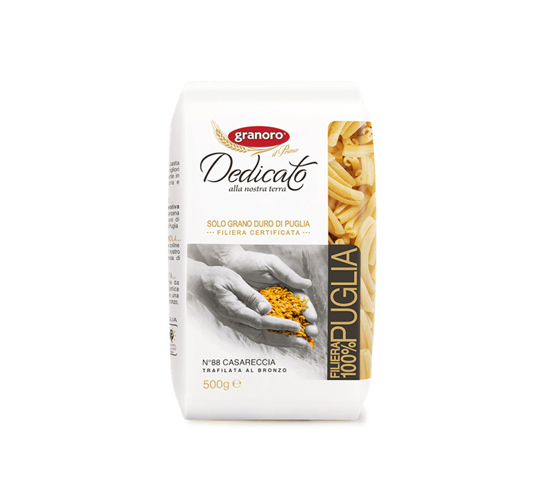 Описание: Текст при отключенной в браузере загрузке изображенийМакаронные изделия бренда «GRANORO»Текстовое описание изображенияЛинейка «Dedicato»Линейка пасты Granoro Дедикато произведена из лучших сортов твёрдой пшеницы, выращенной исключительно в регионе Апулии, который славится богатой историей и традициями. Эта линейка пасты сочетает в себе новейшие технологии и вековые традиции и создана для тех, кто хочет ежедневно наслаждаться натуральными, экологически чистыми продуктами..Текстовое описание изображенияТекст при отключенной в браузере загрузке изображений100% из АпулииGranoro Dedicato (Граноро Дедикато) — это амбициозный проект производителя Granoro, стартовавший в 2012 году и объединяющий на данный момент более 340 небольших сельскохозяйственных предприятий Апулии. Он направлен на поддержку и рост производства пасты из пшеницы твердых сортов высочайшего качества, выращенной на территории Апулии. Общая цель производителей — повысить ценность региональной пшеницы, организовав эффективную цепочку поставок — с полей прямо на стол.Текст при отключенной в браузере загрузке изображенийАмбициозный проект АпулииGranoro Dedicato — первая сертифицированная паста данного проекта. Партнеры, участвующие в этом проекте, гарантируют высочайшее качество и происхождение сырья из Апулии сертификацией, а также отслеживанием 100% объема продукции от полей, где выращивается пшеница, до стола, благодаря соглашению о цепочке поставок между фермерами, производителями муки и макаронной фабрикой Granoro.Текст при отключенной в браузере загрузке изображенийПодтвержденное высочайшее качествоЛинейка Granoro Дедикато имеет сертификацию, которая гарантирует отсутствие пестицидов и глифосатов. Макаронные изделия проходят обработку на матрицах из бронзы, что делает их поверхность чуть шероховатой, позволяя оставаться соусу именно на пасте, а не в тарелке, и делать вкус блюда более насыщенным.Текст при отключенной в браузере загрузке изображенийМакаронные изделия из твердых сортов пшеницы GranOro Dedicato № 88 "Казаречче" 500 гТекст при отключенной в браузере загрузке изображенийЭто традиционная сицилийская паста в виде длинных завитков с загнутыми краями и канавкой посередине. Ее скрученная форма делает пасту идеальной для сцепления как с густыми сложными соусами, так и с простыми классическими.