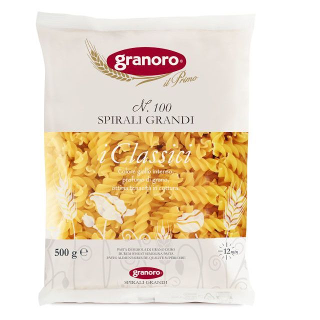 Описание: Текст при отключенной в браузере загрузке изображенийМакаронные изделия бренда «GRANORO»Текстовое описание изображенияЛинейка «I Classici». Классическая линейка Granoro включает в себя самые популярные виды пасты итальянского кухни. Это широкий выбор, начиная с самых классических форматов, таких как спагетти, пенне и пастине, рекомендованных для ежедневного потребления, до характерных для отдельных регионов Италии видов, которые подойдут для приготовления традиционных рецептов.Текстовое описание изображенияПо итальянской традиции, короткие макароны I Classici были созданы, чтобы впитывать любой соус благодаря хорошей пористости и отличному выходу.Текст при отключенной в браузере загрузке изображенийВысокое качество зернаФундаментальным является выбор зерна высокого качества и тщательный контроль производственного процесса. Паста сохраняет яркий золотисто-желтый цвет и аромат типичный для спелой пшеницы. Благодаря своей пористой поверхности паста увеличивается в объеме при варке, а будучи готовой ее шероховатая поверхность позволяет захватывать больше соуса и равномерно распределять его по самой пасте. Тщательно разработанные матрицы позволяют гарантировать всегда один и тот же результат приготовления: паста не разваривается, а всегда получается «al dente» (аль денте), плотная и эластичная.Текст при отключенной в браузере загрузке изображенийПравильный вид пасты — под любой соус Классическая линейка позволяет подобрать правильный вид пасты под любой соус, именно пасту под соус. Например, короткая паста идеальна для рагу и насыщенных соусов, длинная — для легких томатных и сливочных. Пастине, маленькие виды пасты, предназначены для использования в супах и бульонахТекст при отключенной в браузере загрузке изображенийМакаронные изделия из твердых сортов пшеницы GranOro I Classici №100 "Спирали Гранди" 500 гТекст при отключенной в браузере загрузке изображенийЭто фигурная паста  в виде спирали. Изгибы спиралей отлично держат соус.