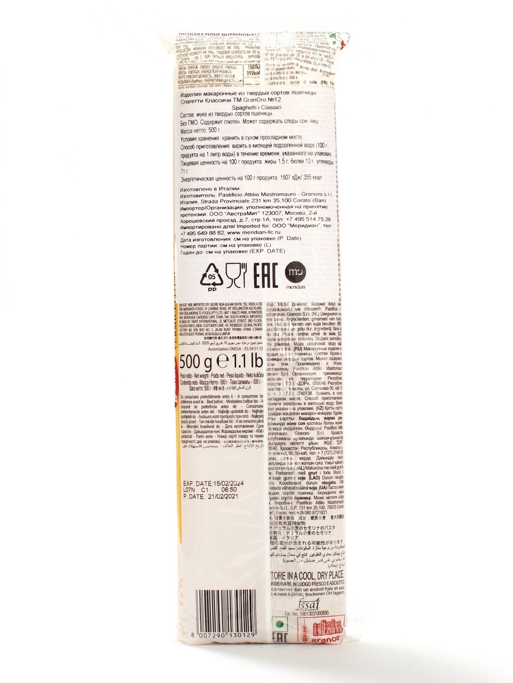 Без ГМО. Содержит глютен. Может содержать следы сои, яиц..