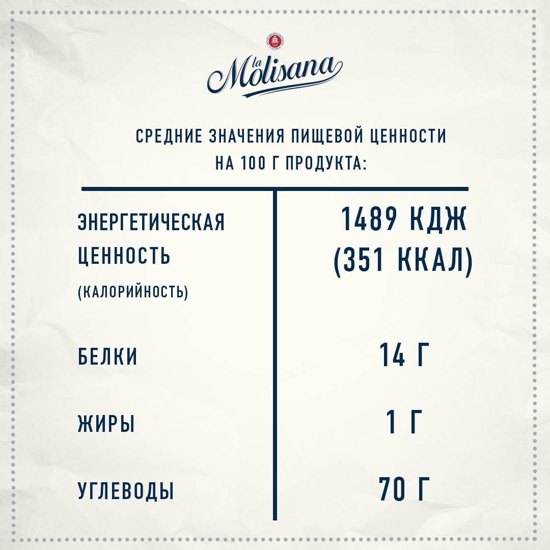 Макаронные изделия LA MOLISANA Farfalle Бантики — это на 100 % натуральный продукт. Он поможет привнести разнообразие в повседневное меню. Необычная форма придется по вкусу детям, превратив прием пищи в увлекательную игру. В составе содержится только мука, изготовленная из твердых сортов пшеницы, так как производитель использует исключительно старинные рецепты и современные технологии приготовления. Высочайшее качество изделию придает насыщенная кислородом чистая вода, добытая из высокогорного источника. Во избежание разваривания и потери формы производитель рекомендует варить макаронные изделия LA MOLISANA Farfalle не более 10 минут в подсоленной воде.