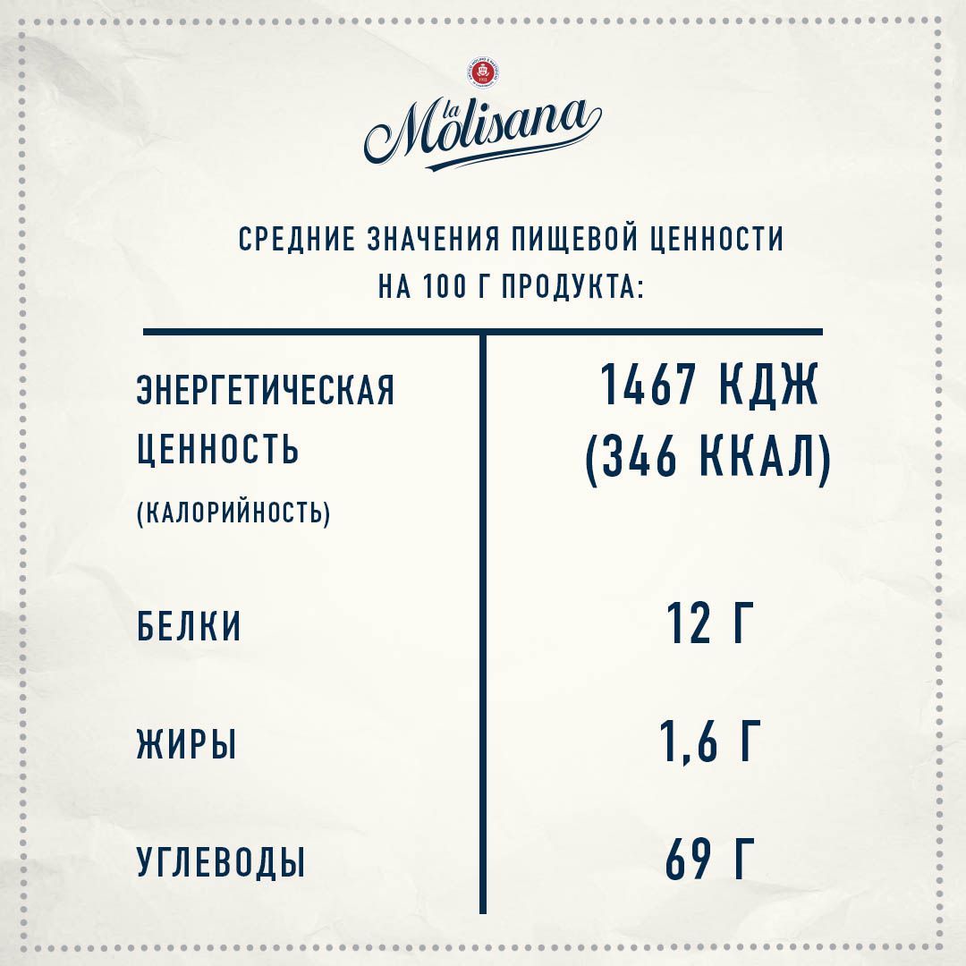 Продукция La Molisana производится только из итальянской пшеницы. Благодаря научным исследованиям, проведённым с участием агрономов, были отобраны семена итальянских сортов твёрдой пшеницы. Новая культура отличается высоким содержанием белка, исключительной прочностью и эластичностью, которая необходима для высококачественных макаронных изделий.