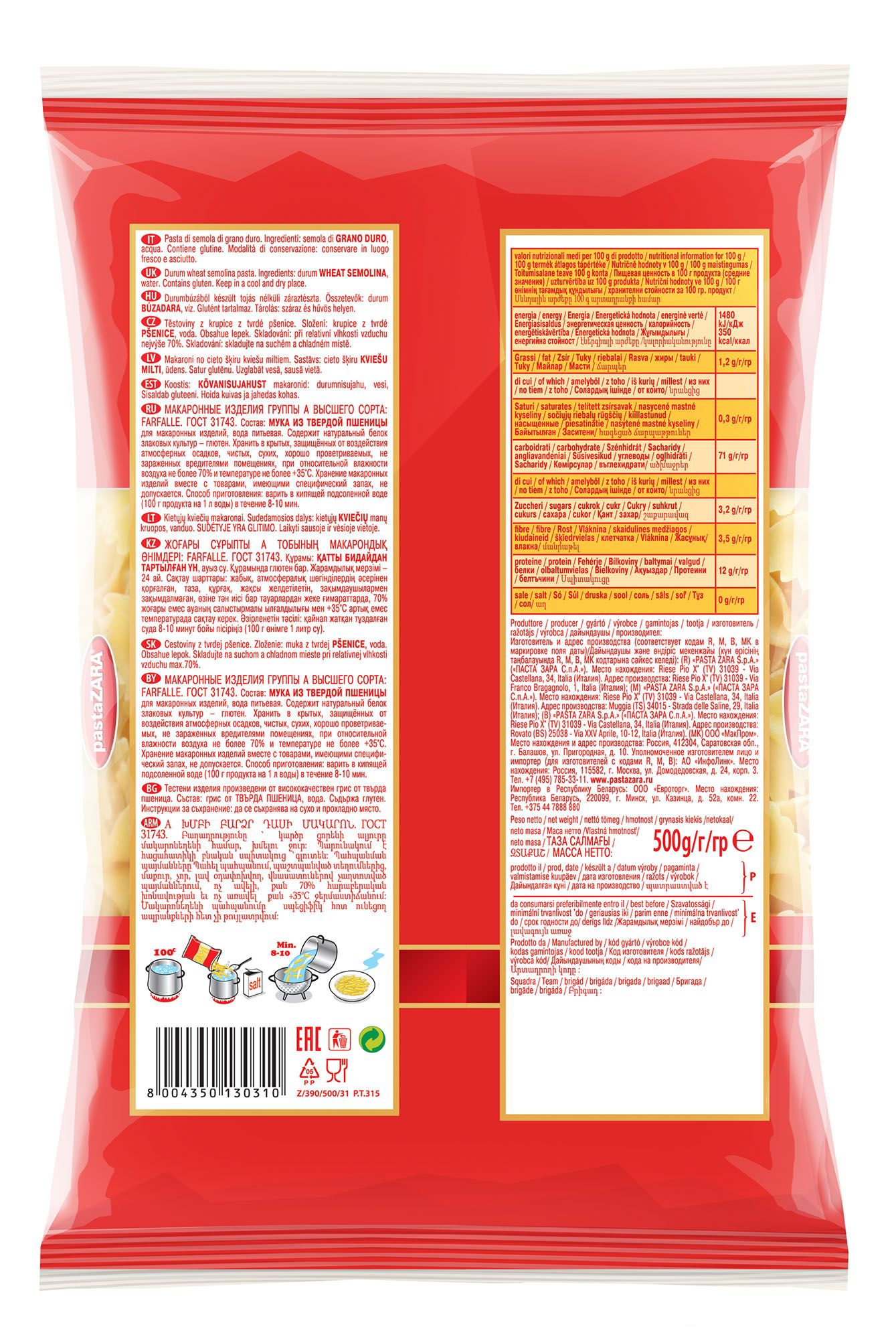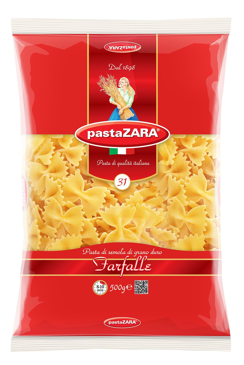 Описание: Макароны-бабочки Pasta Zara 031 сочетают в себе современность технологий производства и традиционное итальянское качество. Эти изделия подойдут для приготовления десятков различных блюд с мясом, рыбой, овощами или сыром. Благодаря муке из твердых сортов пшеницы макароны не развариваются и прекрасно сохраняют свою форму.
