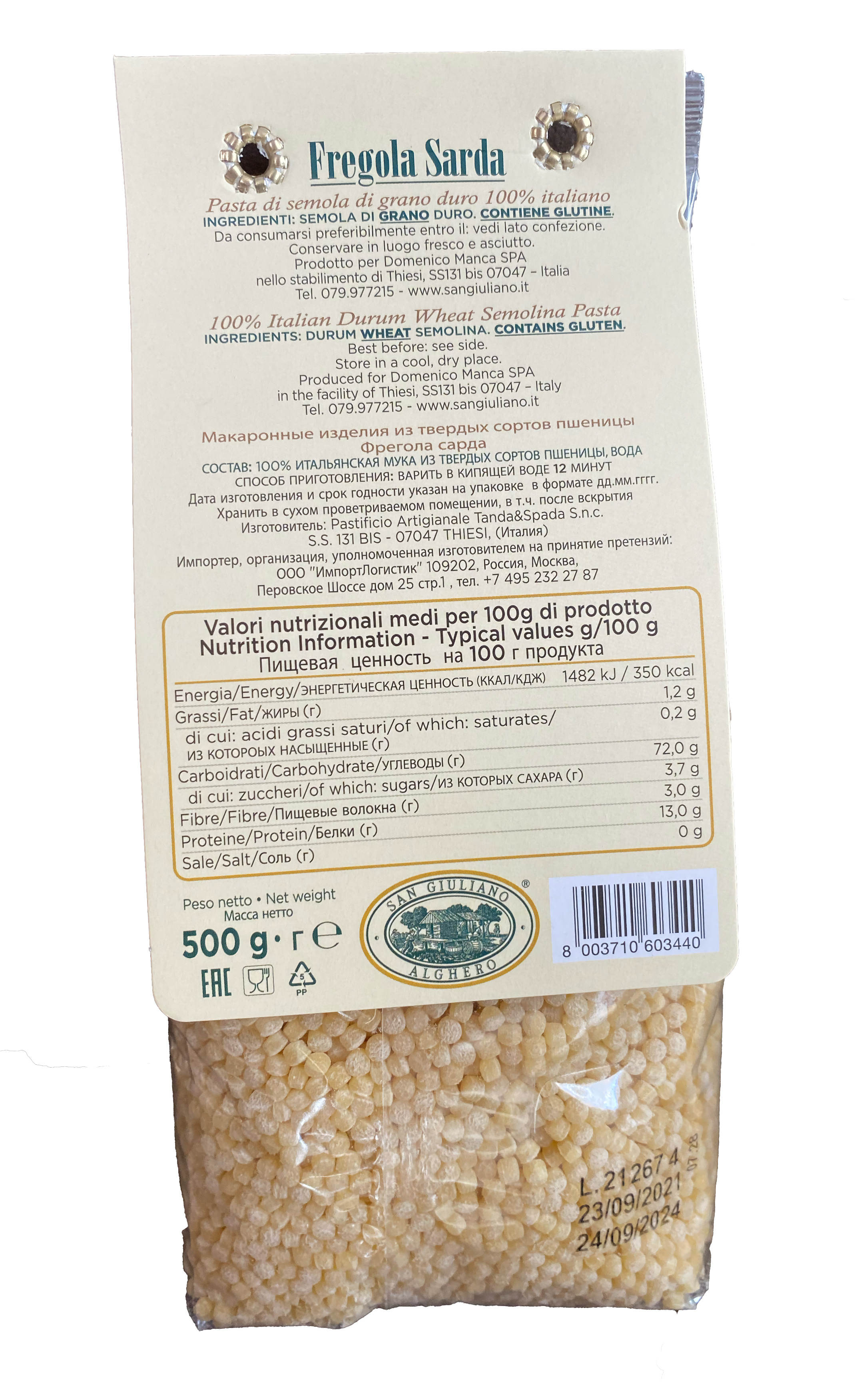 Описание: Макаронные изделия San Giuliano Fregola Sarda 500 г, Италия