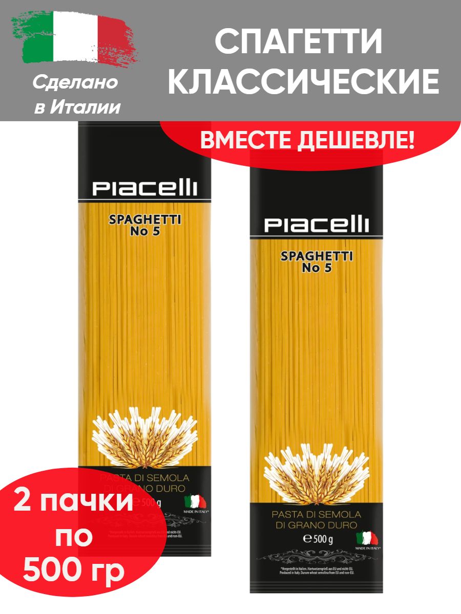 Описание: Макаронные изделия "Spaghetti" №5, 2 упаковки по 500 грамм. Спагетти макаронные изделия из твердых сортов пшеницы - это быстрый и вкусный способ приготовить сытный гарнир для всей семьи. Паста практически универсальна и сочетается с самыми разными продуктами и соусами, что позволит оценить всю многогранность итальянской кухни. В состав пасты входят только два ингредиента: высококачественная мука из твёрдых сортов пшеницы и вода. Время приготовления 6-8 минут. Почувствуйте вкус настоящей итальянской кухни!