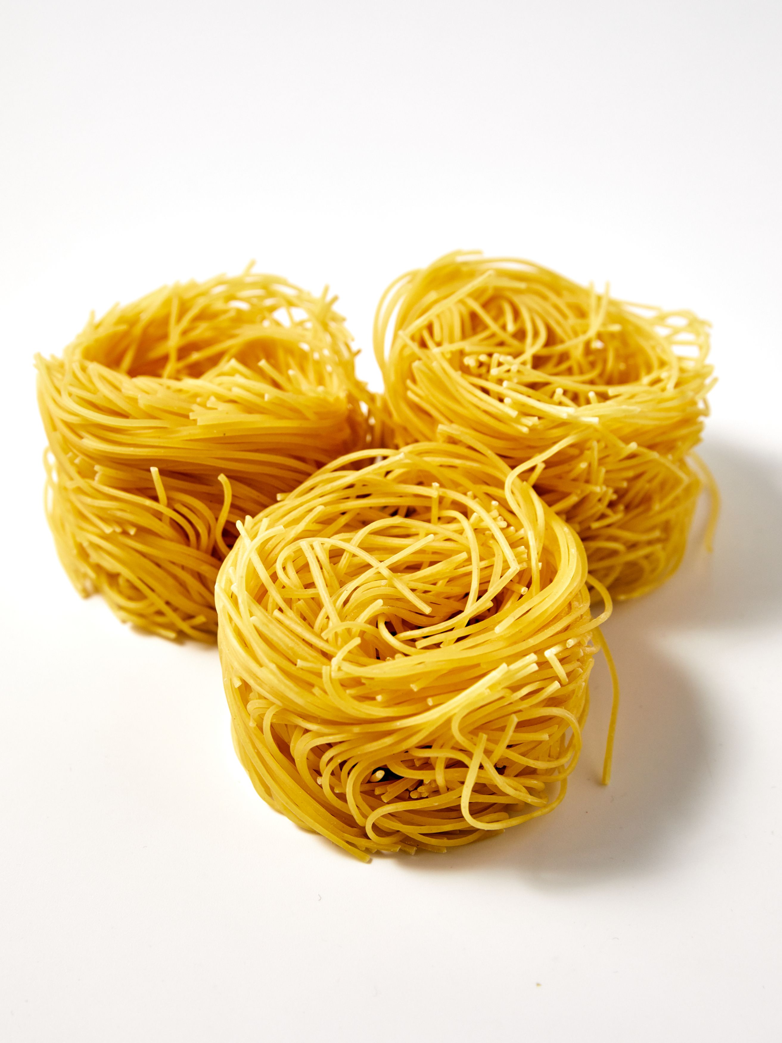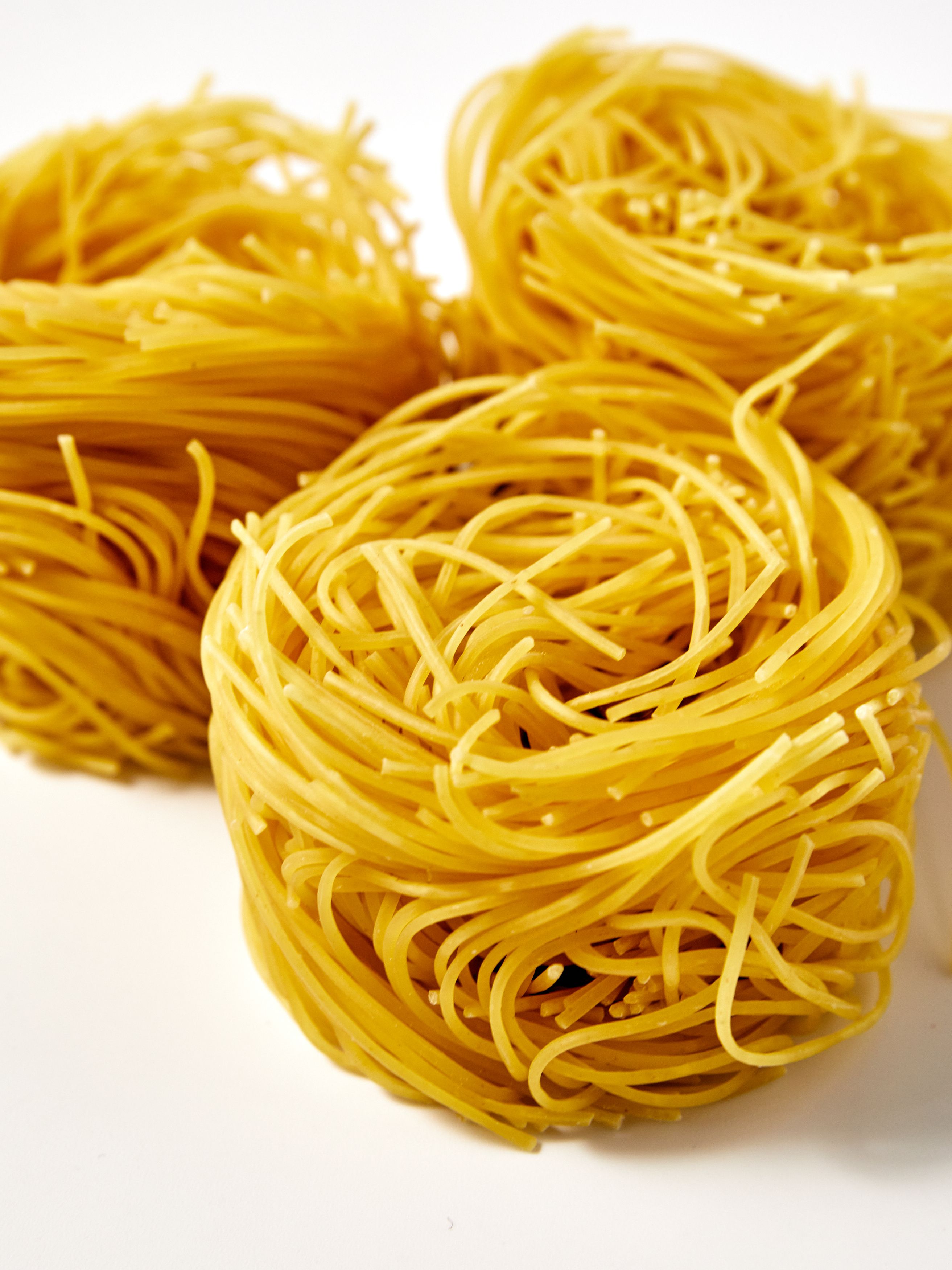 Описание: Макароны 3 Glocken Fadennestchen изготовлены из муки твердых сортов, содержащей чуть меньшее количество клейковины, чем обыкновенная мука. Она хорошо поглощает воду, макароны из нее при варке увеличиваются и не развариваются.