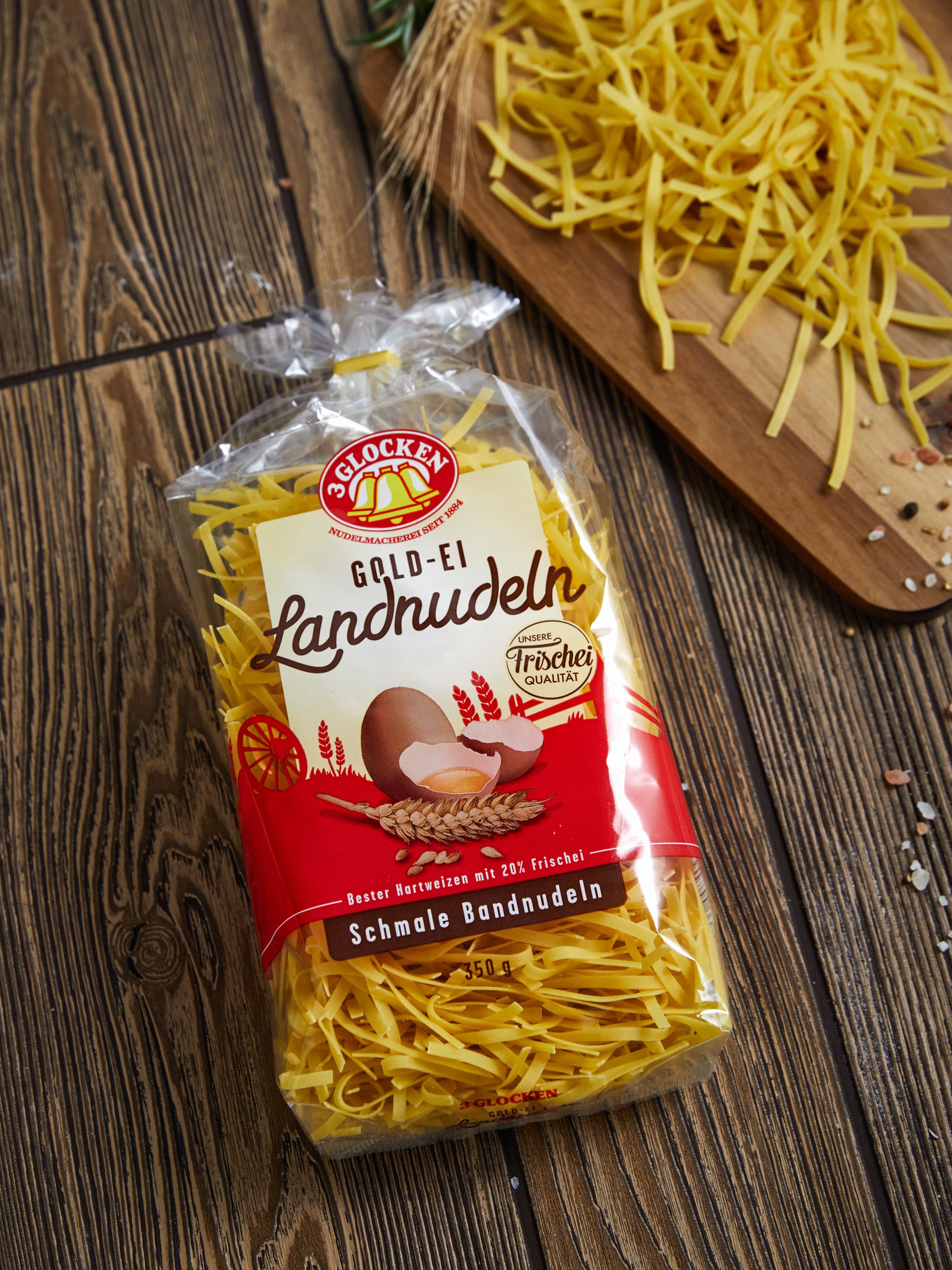 Описание: Мелкая лапша бренда 3 Glocken - натуральные макаронные изделия премиум-класса немецкого производства. Производятся из пшеницы твердых сортов (дурум), чистой родниковой воды и отборных свежайших яиц (4 яйца на 1 кг).  Это маленькие и тонкие макаронные изделия, похожие на вермишель, только с плоским сечением. Лучше всего мелкая лапша подходит для приготовления первых блюд. Можно использовать в качестве гарнира к основному блюду или ингредиента для салатов. Чтобы получить идеальный вкус, макароны следует варить в соответствии с рекомендациями, указанными на упаковке. Для удобства хранения открытой пачки, упаковка оснащена клипсаторной лентой.