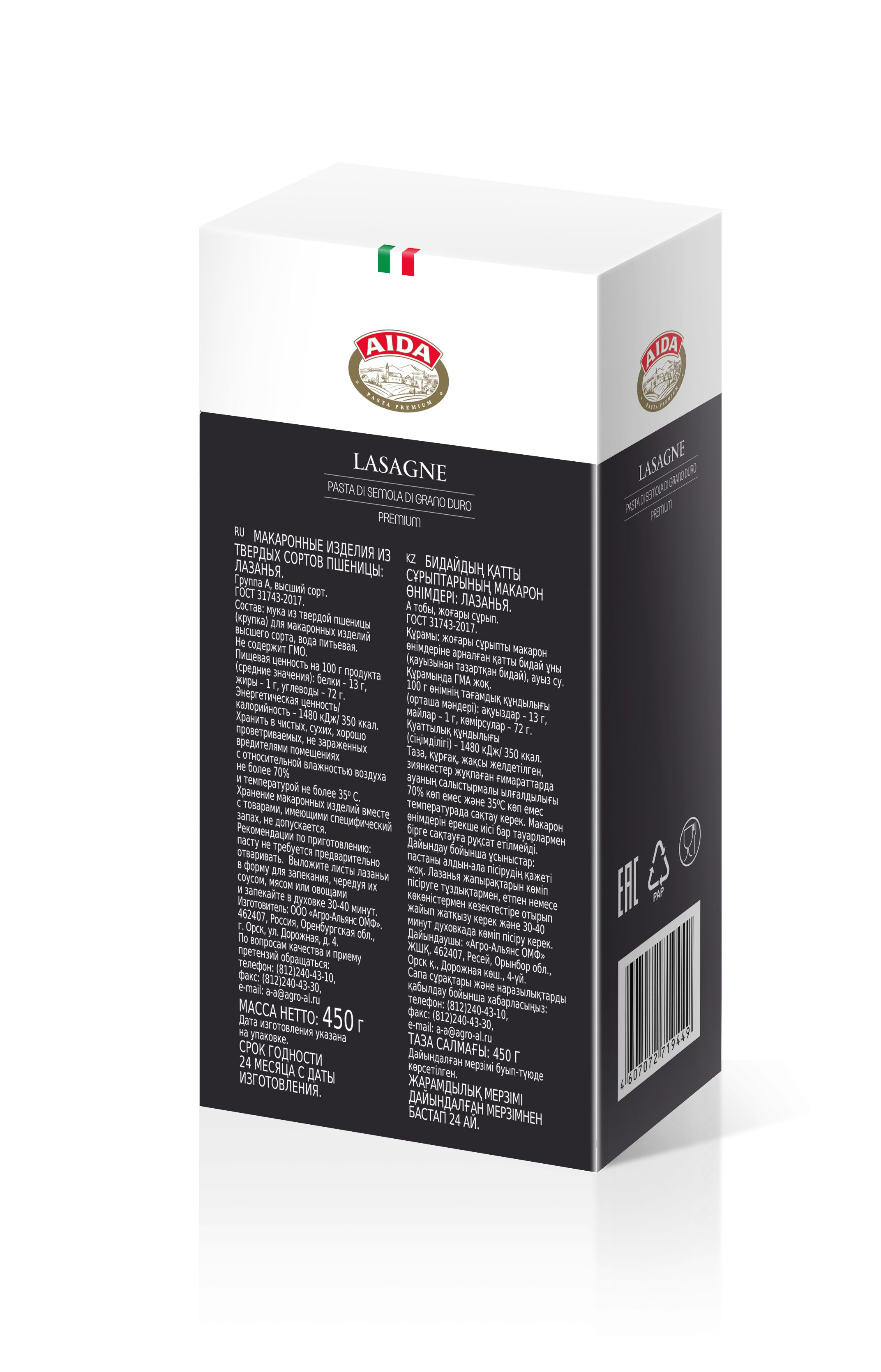 Описание: Макаронные изделия AIDA Лазанья, 450 г