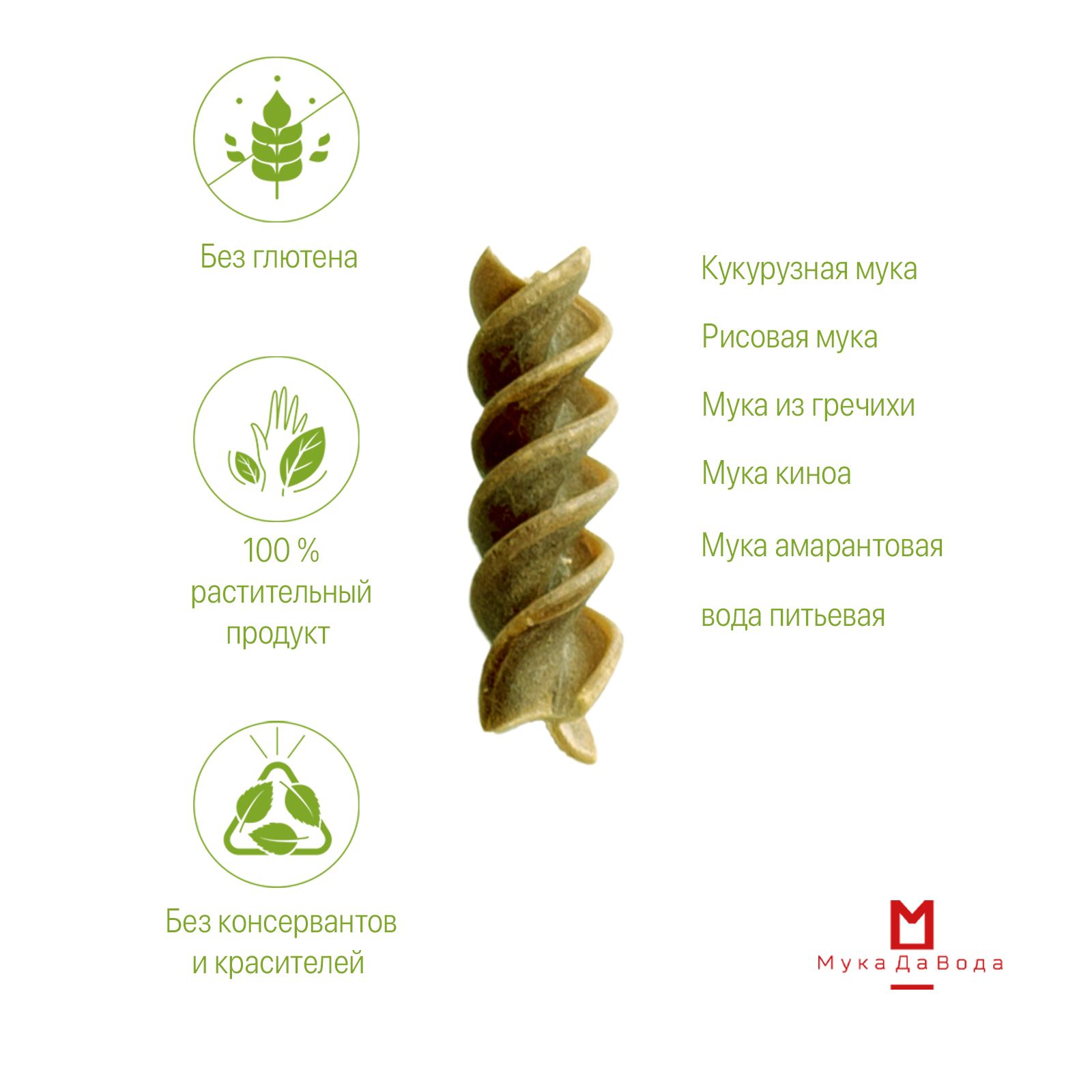 Макароны без глютена 5 злаков (кукуруза, рис, гречка, киноа, амарант), 2 шт по 250 г МукаДаВода безглютеновые продукты / макароны спирали