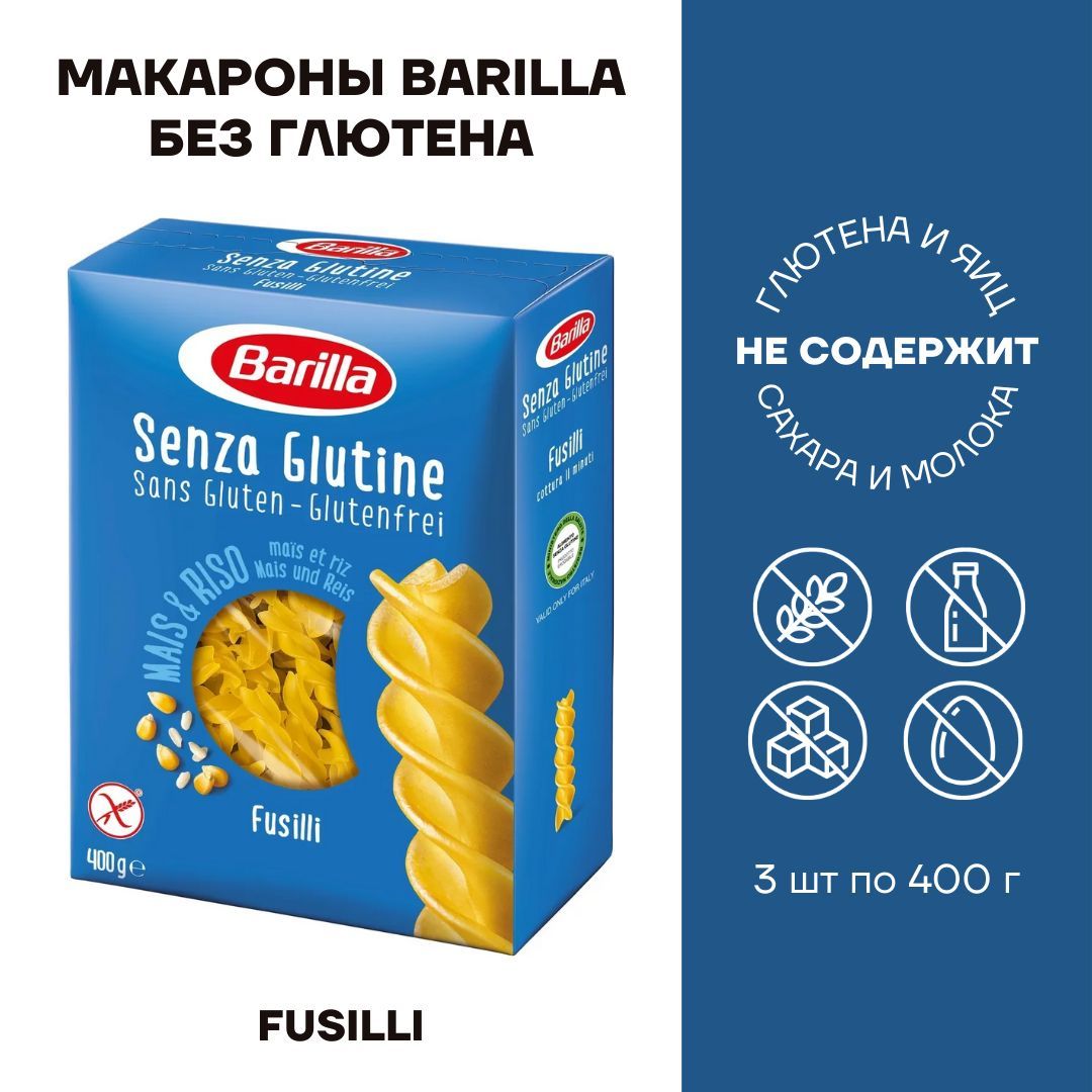 Макароны без глютена Barilla Fusilli 3 шт по 400г