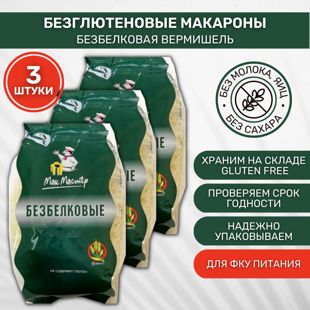 Макароны без глютена безбелковые МакМастер Вермишель 3 шт по 350г