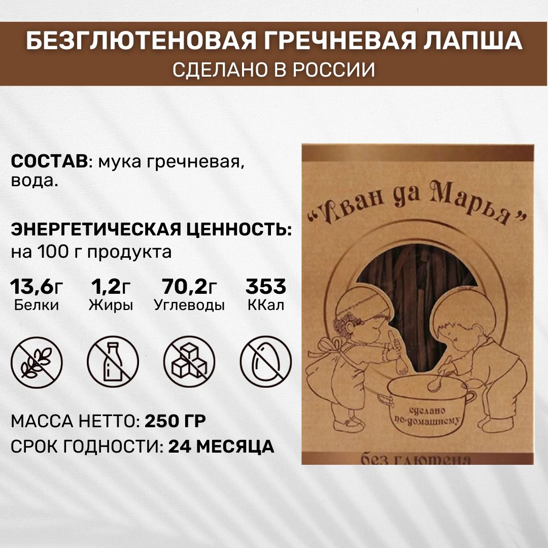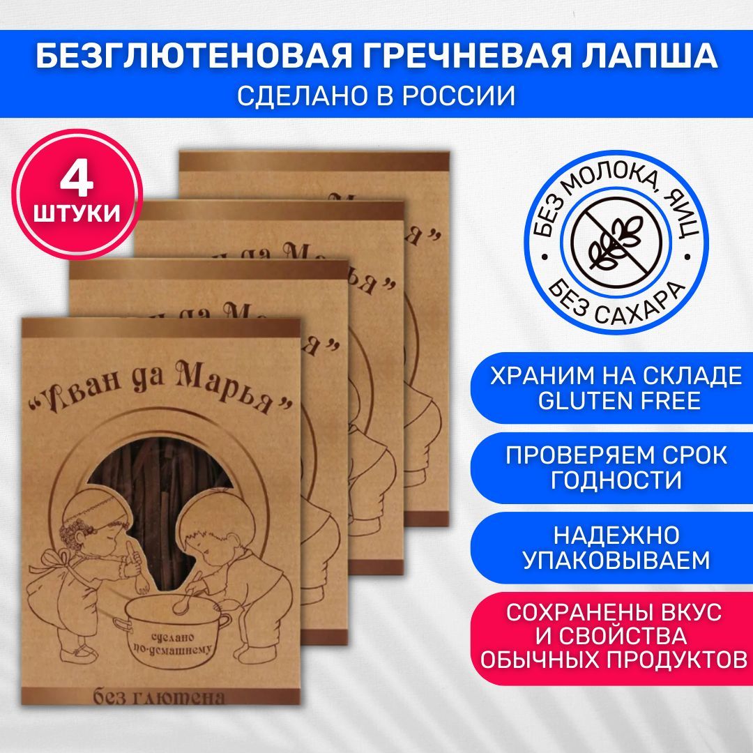 Макароны без глютена Иван да Марья Лапша гречневая 4 шт по 250г