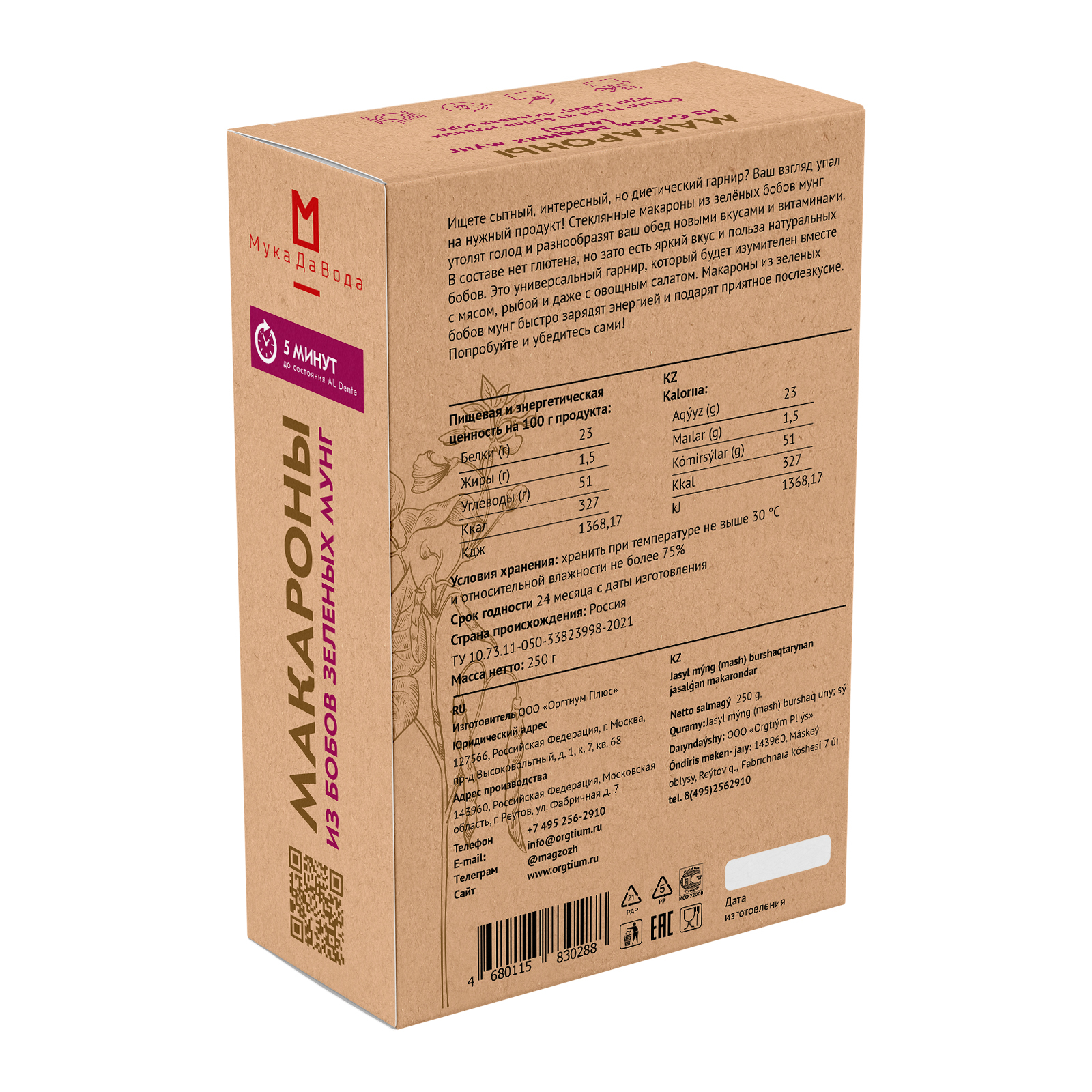 Макароны без глютена из бобов зеленых мунг (маш), 10 шт по 250г МукаДаВода безглютеновые продукты / макароны спирали