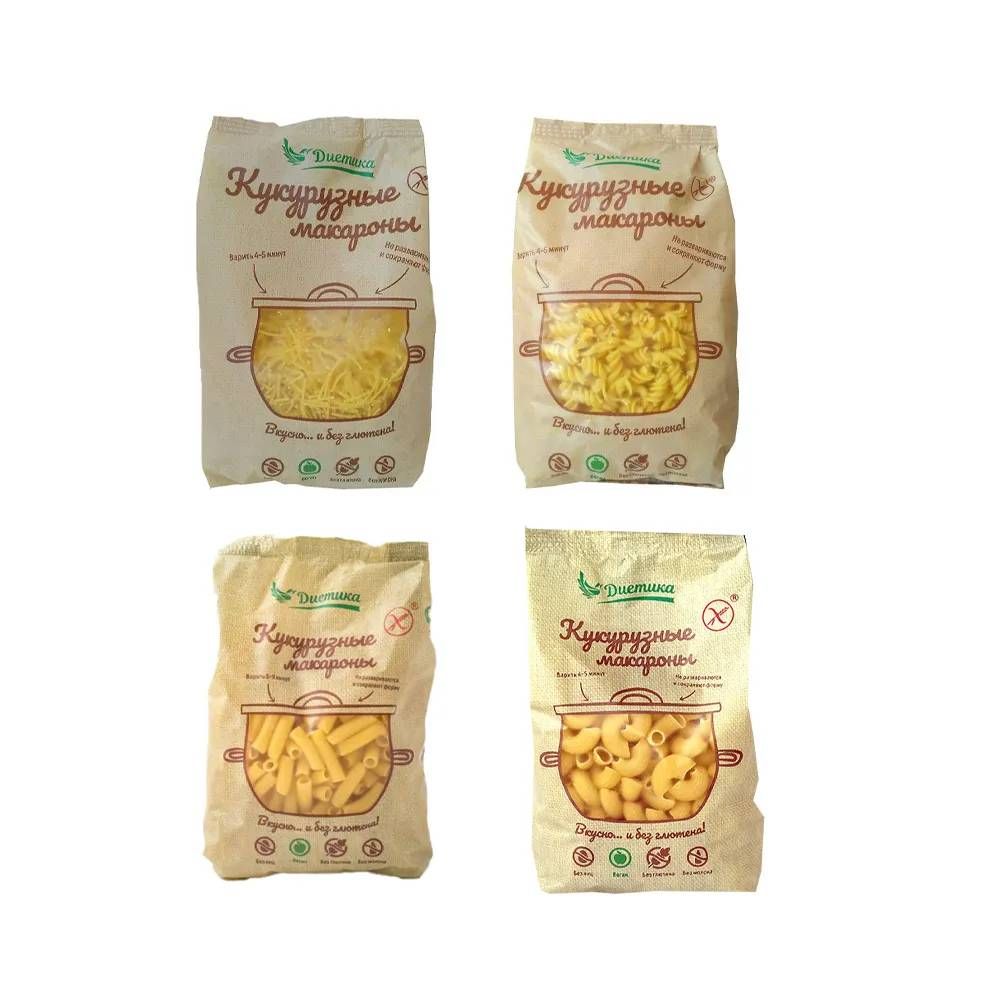 Описание: Для любителей макаронных изделий российский бренд Диетика выпустил линейку товаров из кукурузной муки.