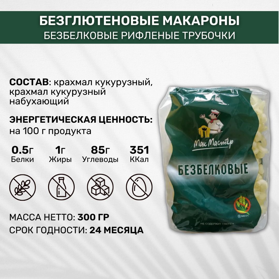 Описание: Безбелковая рифленая трубочка МакМастер производится из безбелкового сырья - крахмала. Ведётся жёсткий контроль содержания белка в сырье и готовой продукции ГОСТовскими методами высококвалифицированными специалистами. Содержание белка в макаронах не превышает 0,9%.