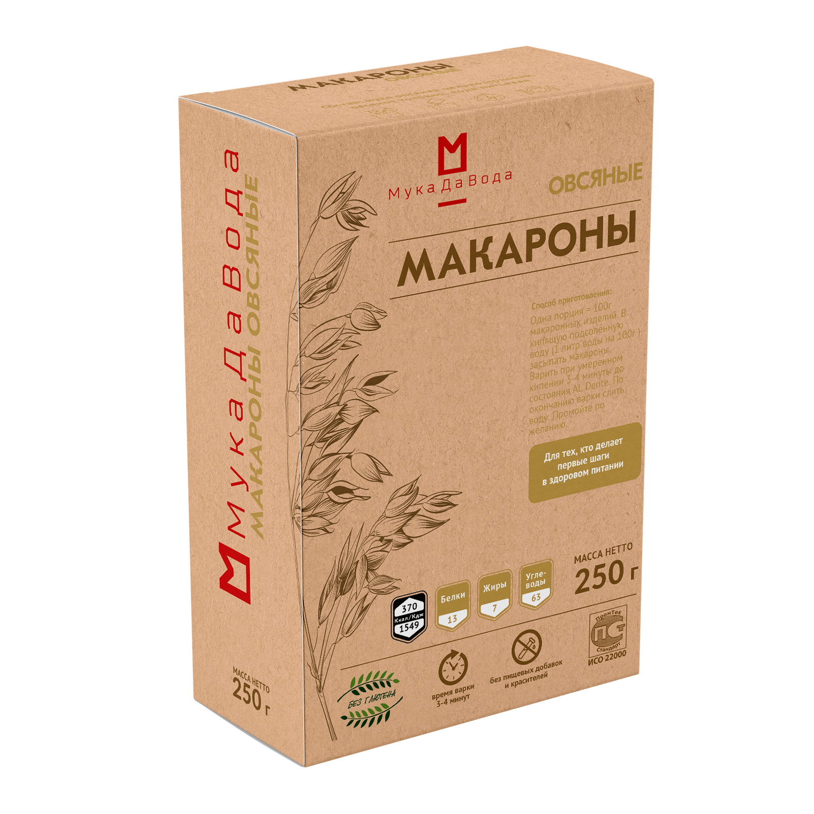 Макароны без глютена овсяные из цельнозерновой муки 250 г, МукаДаВода безглютеновые продукты / макароны спирали