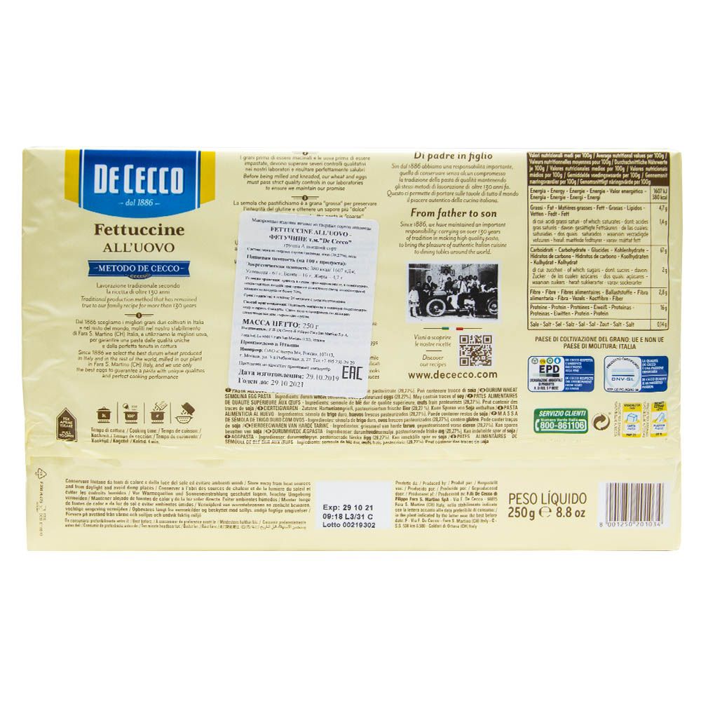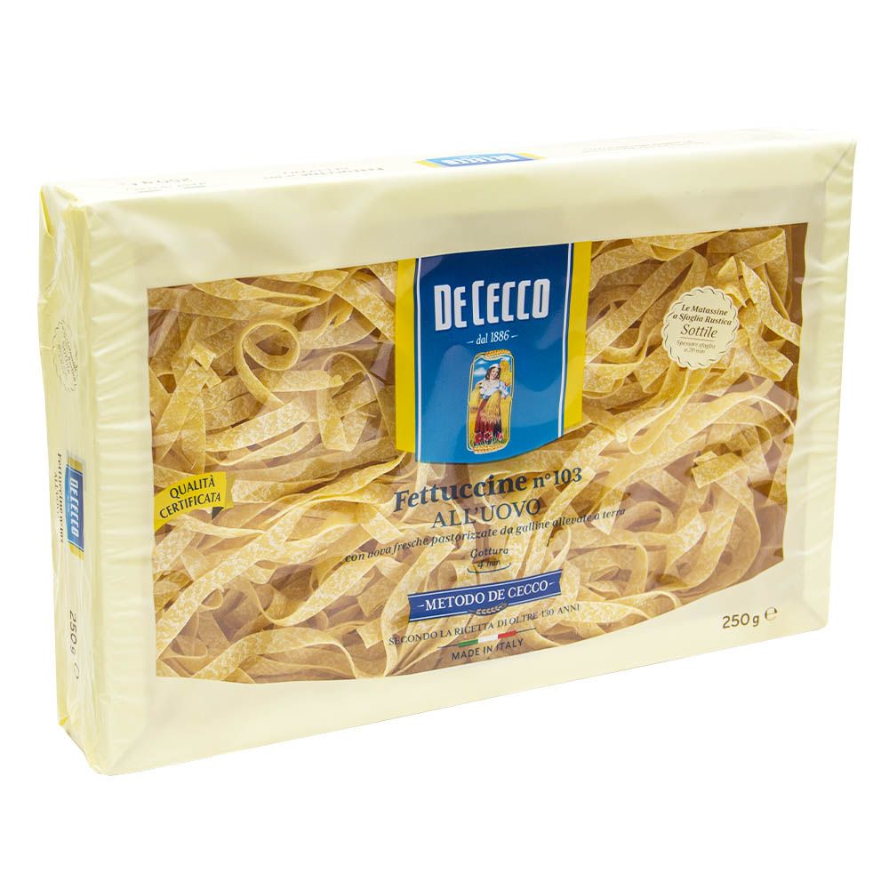 Описание: Макароны Феттучине яичные №103 DeCeccoDe Cecco – ведущая международная итальянская компания по производству высококачественных макаронных изделий и оливкового масла, основанная в 1886 году.