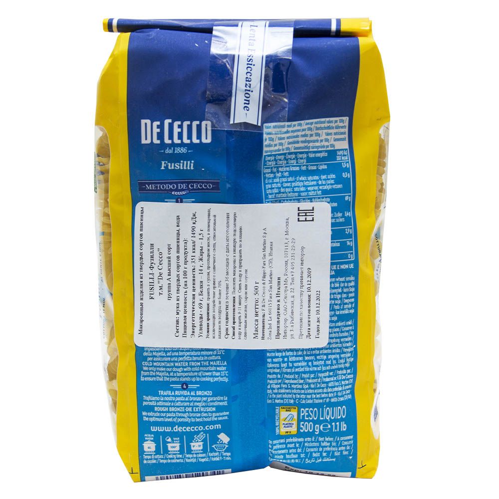 Описание: Макароны Фузилли №34 DeCeccoDe Cecco – ведущая международная итальянская компания по производству высококачественных макаронных изделий и оливкового масла, основанная в 1886 году.