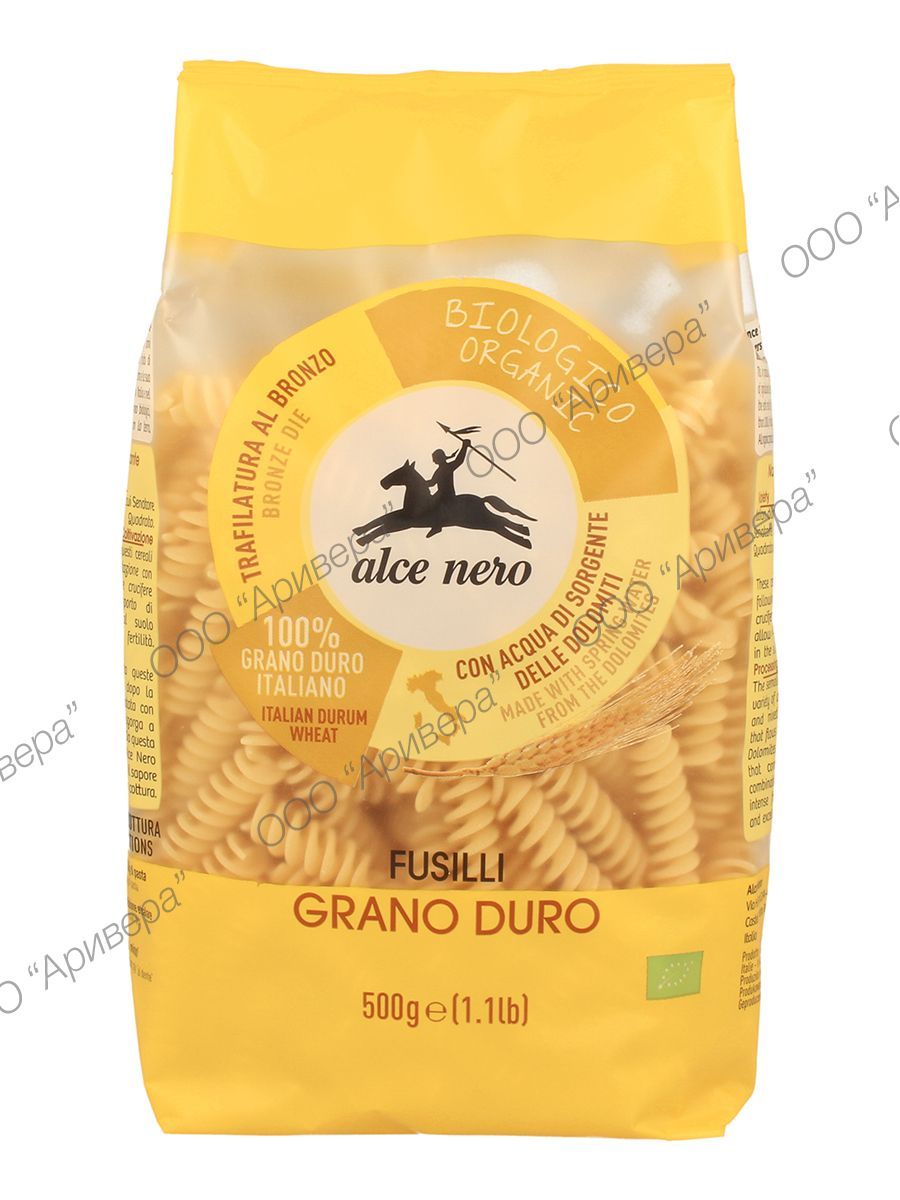 Макароны ФУЗИЛЛИ ALCE NERO из твердых сортов пшеницы БИО, Италия, 500 г