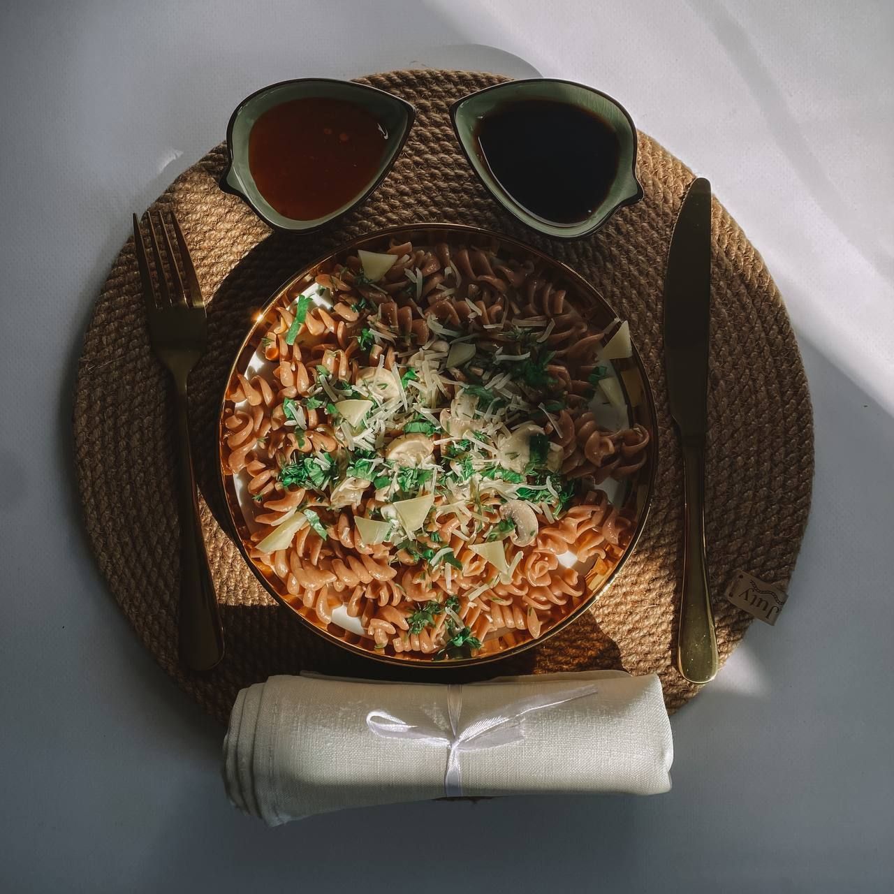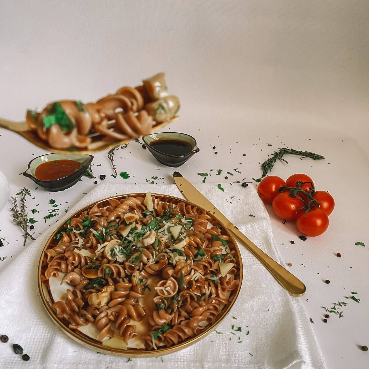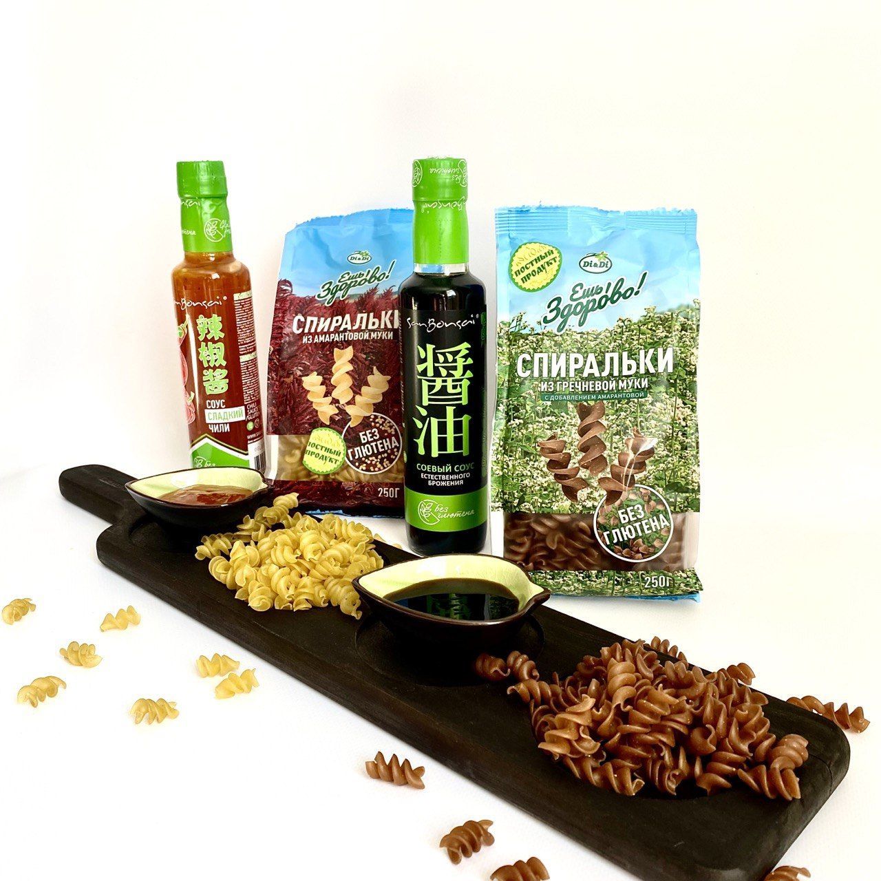Готовые макароны идеально сочетаются с безглютеновыми соусами Терияки, Сладкий Чили, Соевым соусом.