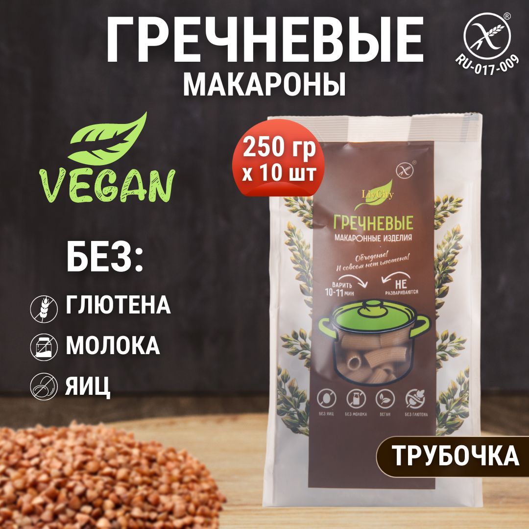 Макароны гречневые без глютена трубочка, диетический постный продукт, 10 шт. по 250 г