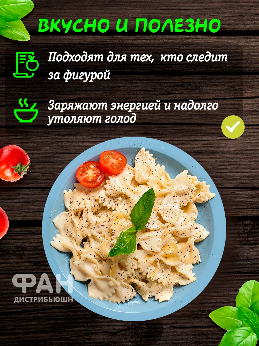 Описание: Итальянские макароны в форме бабочек ФАРФАЛЛЕ 1000 гр из твёрдых сортов пшеницы пользуются большой популярностью сегодня. Макаронные изделия бабочки из пшеничной муки высшего сорта являются высоко белковым и веган продуктом, не содержат в составе гмо, глутамат, ароматизаторы, красители. Макарошки спиральки без яиц и молока в составе отлично подходят для детей, кето диеты дюкана для похудения и полезного сбалансированного питания. Маквроны в форме бантика подходят для приготовления популярных блюд, среди которых: макароны по-флотски, mac and cheese с сыром, вок с грибами морепродуктами (креветки мидии моллюски) рыбой курицей, лапша со сливками в сливочном томатном сырном и сметанном соусе. Помимо этого, макарны бантики подходят для различных детских супов с вермишелькой и бульонов. Фигурные макороны не развариваются во время варки, не слипаются, сохраняют степень готовности альденте. Итальянская паста актуальна на любой повод: романтический вкусный обед и ужин, на праздничный стол, в День Рождения, 8 марта, Новый Год, 23 февраля. Макаронные изделия RUMMO из Италии очень разнообразны по форме и составу. Среди них есть мелкие и крупные макароны, подходящие для известных блюд китайской японской корейской вьетнамской кухни, среди которых острый том ям, фо бо, макен чиз, лазанья. В ассортименте присутствуют также безглютеновые продукты без глютена из кукурузной и рисовой муки, цельнозерновая гречневая лопша для лагмана, бобовая диетическая диабетическая паста из нута полбы и красной чечевицы. Есть маленькие и большие ракушки, картофельные клецки ньокки, гнезда, всевозможные спагетти, листы лазаньи, вермишель, широкая яичная дапша, звездочки и зернышки семечки ризони орзо по 400 гр 500гр 1 кг 3 кг. Рекомендуем обязательно попробовать наши хиты фетучини, фузилли, лингвини и тальятелле. Все макароны бакалеи имеют большой срок хранения. На все ассорти товаров действуют приятные скидки. *Может содержать следы сои и горчицы.