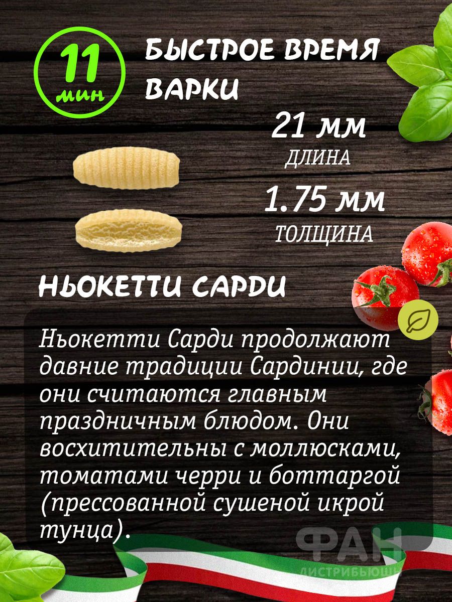 Макароны классические НЬОКЕТТИ САРДИ Rummo 63, пакет, 1000 гр.