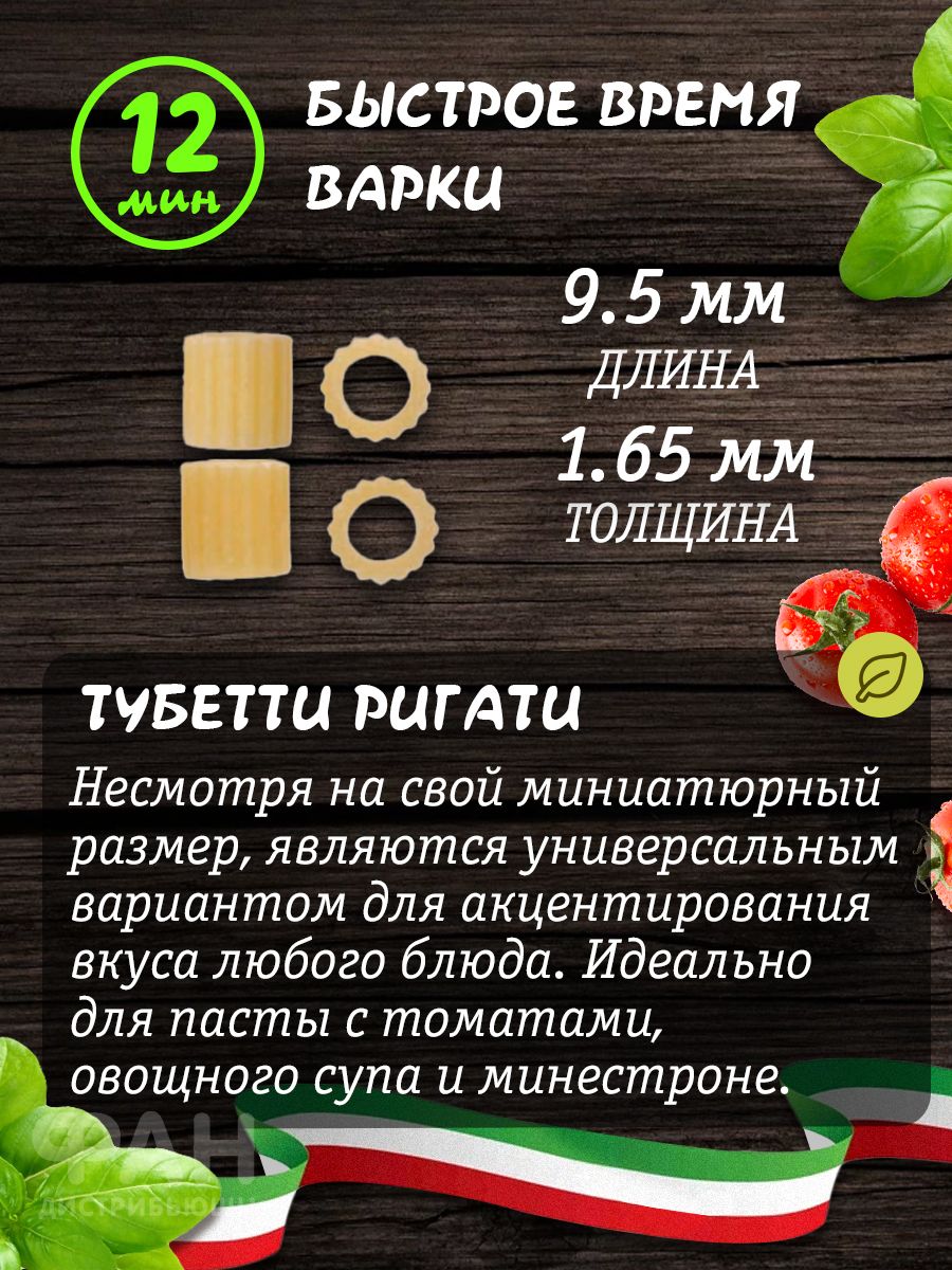 Описание: Итальянские рифленые макароны в форме колечек ТУБЕТТИ РИГАТИ 1000 гр из твёрдых сортов пшеницы пользуются большой популярностью сегодня. Макаронные изделия колечки из пшеничной муки высшего сорта являются высоко белковым и веган продуктом, не содержат в составе гмо, глутамат, ароматизаторы, красители. Ребристые макарошки колесики без яиц и молока в составе отлично подходят для детей, кето диеты дюкана для похудения и полезного сбалансированного питания. Маквроны трубочки идеальны для приготовления популярных блюд, среди которых: макароны по-флотски, mac and cheese с сыром, вок с грибами морепродуктами (креветки мидии моллюски) рыбой курицей, лапша со сливками в сливочном томатном сырном и сметанном соусе. Помимо этого, макарны кольца подходят для различных детских супов с вермишелькой и бульонов. Фигурные макороны не развариваются во время варки, не слипаются, сохраняют степень готовности альденте. Итальянская паста актуальна на любой повод: романтический вкусный обед и ужин, на праздничный стол, в День Рождения, 8 марта, Новый Год, 23 февраля. Макаронные изделия RUMMO из Италии очень разнообразны по форме и составу. Среди них есть мелкие и крупные макароны, подходящие для известных блюд китайской японской корейской вьетнамской кухни, среди которых острый том ям, фо бо, макен чиз, лазанья. В ассортименте присутствуют также безглютеновые продукты без глютена из кукурузной и рисовой муки, цельнозерновая гречневая лопша для лагмана, бобовая диетическая диабетическая паста из нута полбы и красной чечевицы. Есть маленькие и большие ракушки, картофельные клецки ньокки, гнезда, всевозможные спагетти, листы лазаньи, вермишель, широкая яичная дапша, звездочки и зернышки семечки ризони орзо по 400 гр 500гр 1 кг 3 кг. Рекомендуем обязательно попробовать наши хиты фетучини, фузилли, лингвини и тальятелле. Все макароны бакалеи имеют большой срок хранения. На все ассорти товаров действуют приятные скидки. *Может содержать следы сои и горчицы.