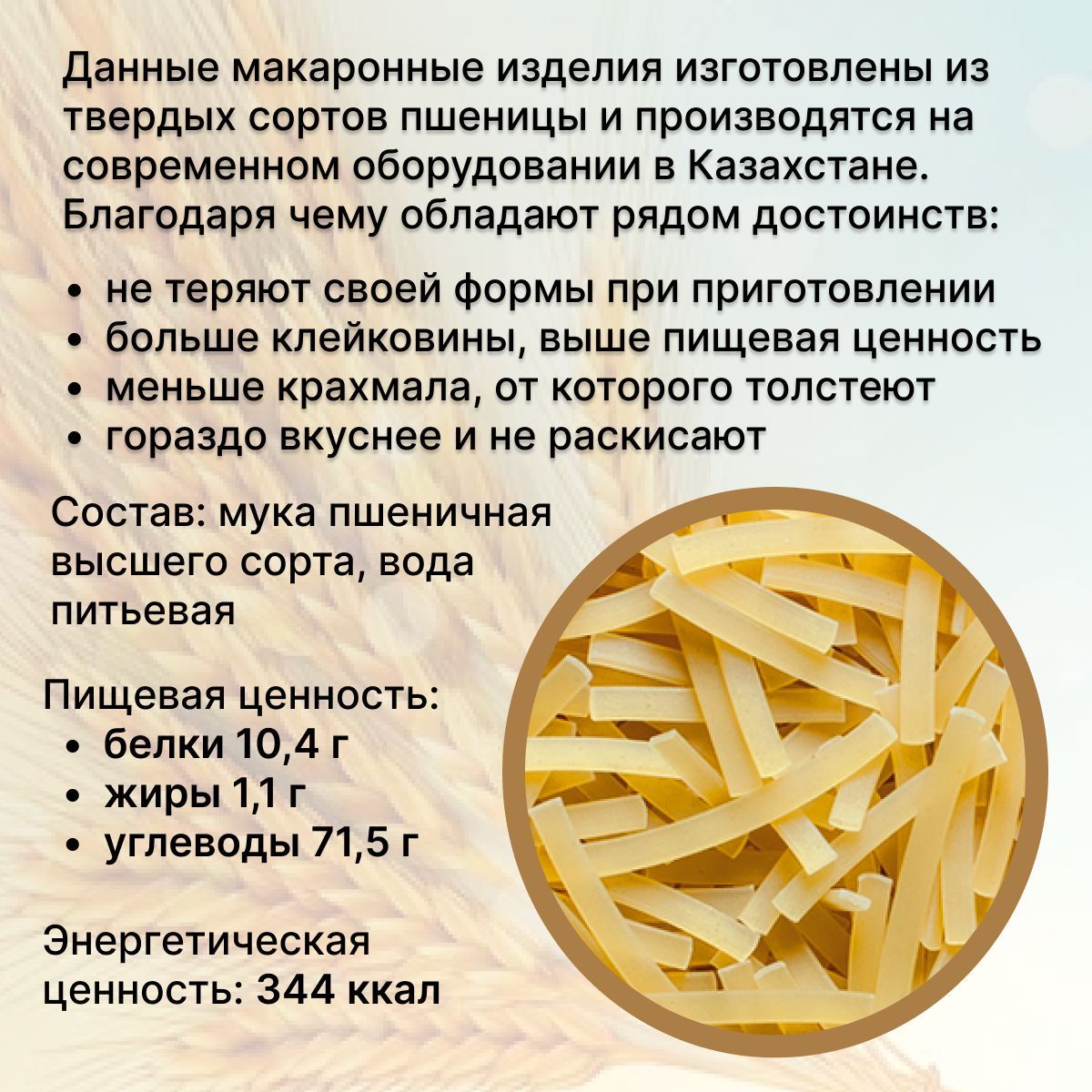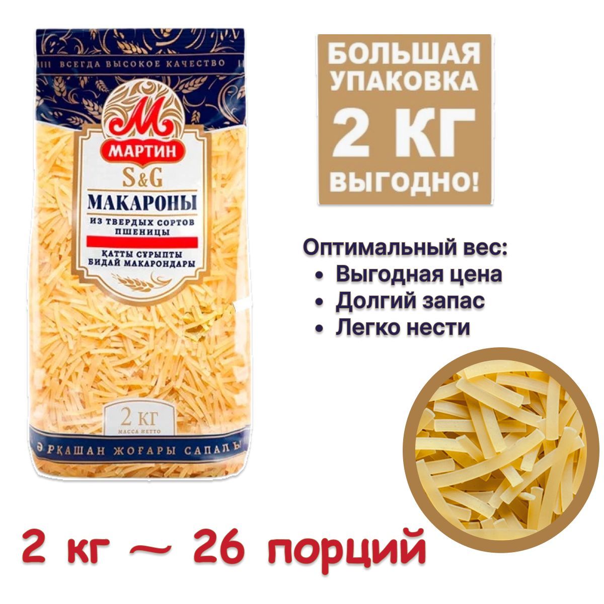 Описание: Макароны Мартин производятся в Республике Казахстан из муки высшего сорта. Для производства этих макаронных изделий выбраны специальные твердые сорта пшеницы, богатые полезными углеводами, благодаря которым человек быстро заряжается энергией и восстанавливает силы. Макароны, сделанные из пшеницы твёрдых сортов, обеспечивают поступление так называемых медленных углеводов.Благодаря этому, они не теряют своей формы при приготовлении. Это свойство особенно ценят любители пасты и других блюд из макарон, а также те, кто выбирает сбалансированное здоровое питание без ограничений.
