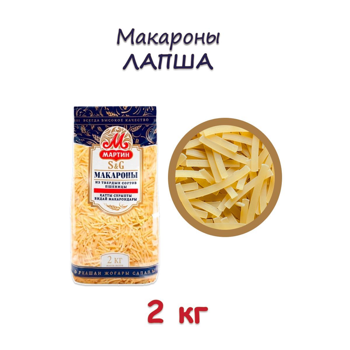 Макароны Мартин из твердых сортов пшеницы Лапша, 2 кг