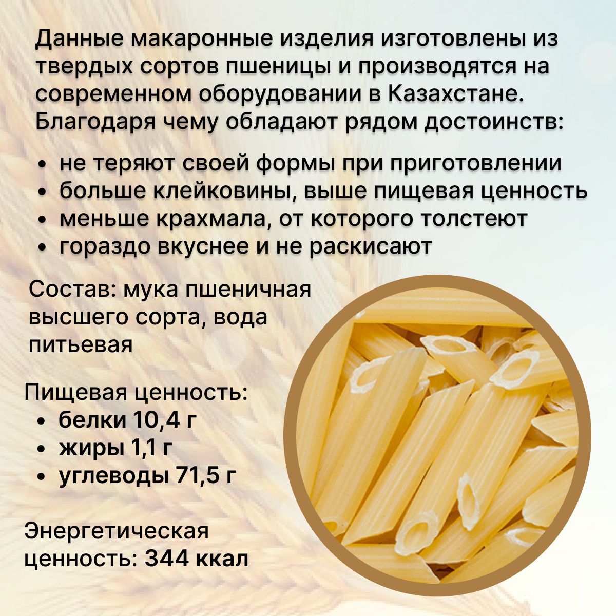 Описание: Макароны Мартин производятся в Республике Казахстан из муки высшего сорта. Для производства этих макаронных изделий выбраны специальные твердые сорта пшеницы, богатые полезными углеводами, благодаря которым человек быстро заряжается энергией и восстанавливает силы. Макароны, сделанные из пшеницы твёрдых сортов, обеспечивают поступление так называемых медленных углеводов.Благодаря этому, они не теряют своей формы при приготовлении. Это свойство особенно ценят любители пасты и других блюд из макарон, а также те, кто выбирает сбалансированное здоровое питание без ограничений.