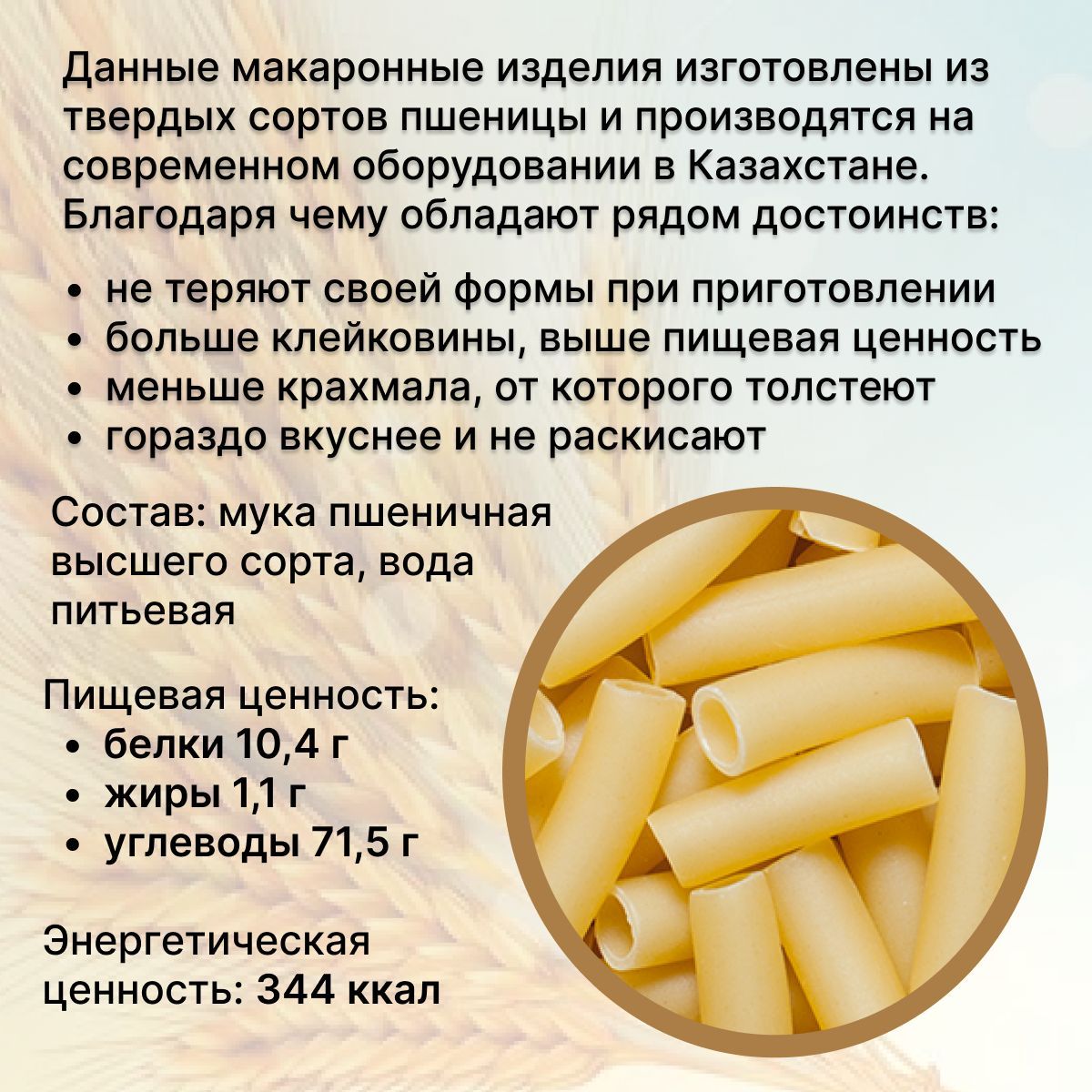 Описание: Макароны Мартин производятся в Республике Казахстан из муки высшего сорта. Для производства этих макаронных изделий выбраны специальные твердые сорта пшеницы, богатые полезными углеводами, благодаря которым человек быстро заряжается энергией и восстанавливает силы. Макароны, сделанные из пшеницы твёрдых сортов, обеспечивают поступление так называемых медленных углеводов.Благодаря этому, они не теряют своей формы при приготовлении. Это свойство особенно ценят любители пасты и других блюд из макарон, а также те, кто выбирает сбалансированное здоровое питание без ограничений.