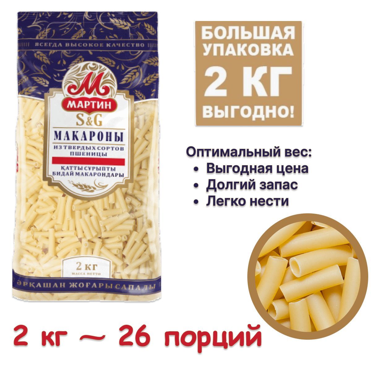 Макароны Мартин из твердых сортов пшеницы Трубочки, 2 кг