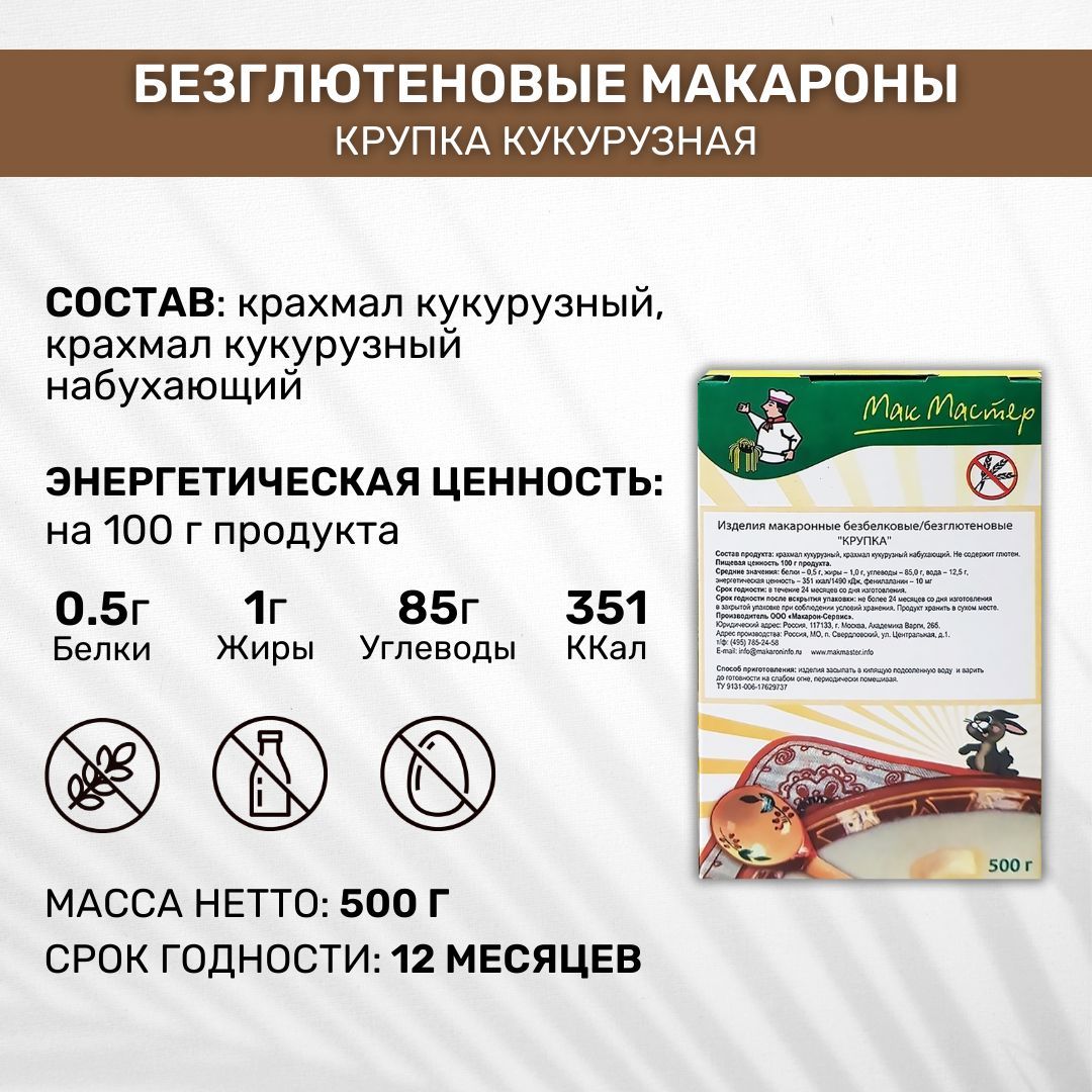 Макароны низкобелковые без глютена МакМастер Крупка 3 шт по 500г