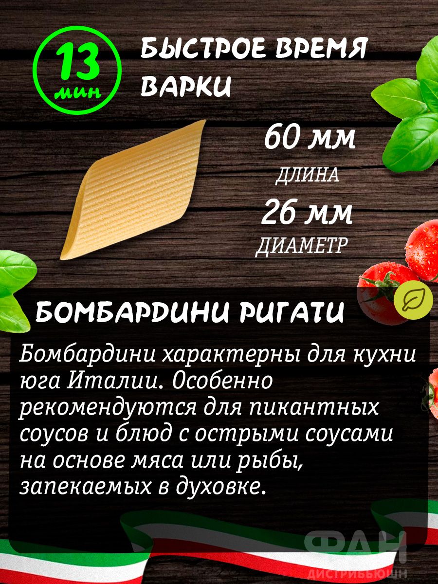 Описание: Итальянские рифленые макароны в форме крупных рифленых перьев БОМБАРДИНИ РИГАТИ 500 гр из твёрдых сортов пшеницы пользуются большой популярностью сегодня. Макаронные изделия перья из пшеничной муки высшего сорта являются высоко белковым и веган продуктом, не содержат в составе гмо, глутамат, ароматизаторы, красители. Ребристые макарошки перышки без яиц и молока в составе отлично подходят для детей, кето диеты дюкана для похудения и полезного сбалансированного питания. Маквроны трубочки применяют для фаршировки и приготовления популярных блюд, среди которых: макароны по-флотски, mac and cheese с сыром, вок с грибами морепродуктами (креветки мидии моллюски) рыбой курицей, лапша со сливками в сливочном томатном сырном и сметанном соусе. Помимо этого, большие макарны пенне подходят для фарширования и различных детских супов с вермишелькой и бульонов. Фигурные макороны трубочки не развариваются во время варки, не слипаются, сохраняют степень готовности альденте. Итальянская паста актуальна на любой повод: романтический вкусный обед и ужин, на праздничный стол, в День Рождения, 8 марта, Новый Год, 23 февраля. Макаронные изделия RUMMO из Италии очень разнообразны по форме и составу. Среди них есть мелкие и крупные макароны, подходящие для известных блюд китайской японской корейской вьетнамской кухни, среди которых острый том ям, фо бо, макен чиз, лазанья. В ассортименте присутствуют также безглютеновые продукты без глютена из кукурузной и рисовой муки, цельнозерновая гречневая лопша для лагмана, бобовая диетическая диабетическая паста из нута полбы и красной чечевицы. Есть маленькие и большие ракушки, картофельные клецки ньокки, гнезда, всевозможные спагетти, листы лазаньи, вермишель, широкая яичная дапша, звездочки и зернышки семечки ризони орзо по 400 гр 500гр 1 кг 3 кг. Рекомендуем обязательно попробовать наши хиты фетучини, фузилли, лингвини и тальятелле. Все макароны бакалеи имеют большой срок хранения. На все ассорти товаров действуют приятные скидки. *Может содержать следы сои и горчицы.