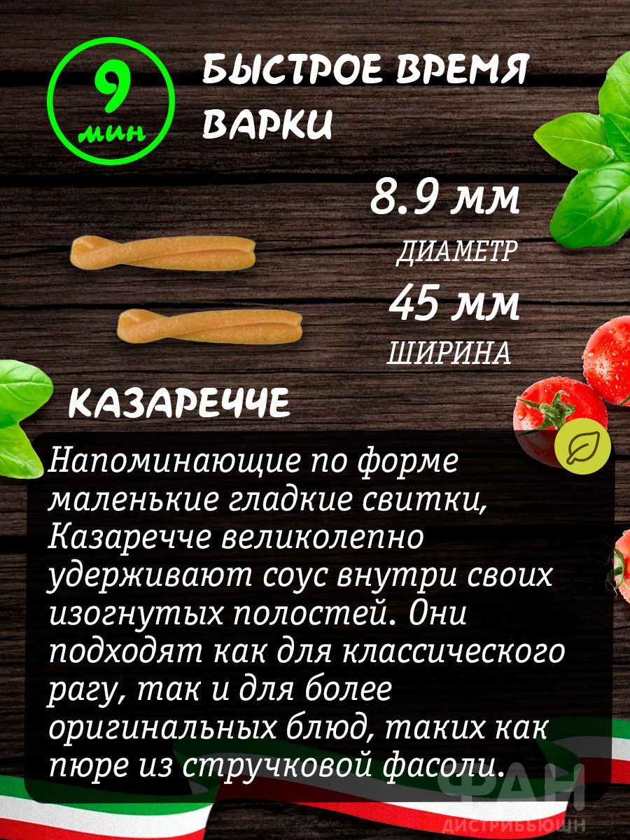 Описание: Итальянские макароны в форме свитков КАЗАРЕЧЧЕ 500 гр из органической цельнозерновой пшеницы пользуются большой популярностью сегодня. Макаронные изделия свитки из цельного зерна являются высоко белковым и веган продуктом, не содержат в составе гмо, глутамат, ароматизаторы, красители. Маленькие макарошки витки без яиц и молока в составе отлично подходят для детей, кето диеты дюкана для похудения и полезного сбалансированного питания. Маквроны в форме витков идеальны для приготовления популярных блюд, среди которых: макароны по-флотски, mac and cheese с сыром, вок с грибами морепродуктами (креветки мидии моллюски) рыбой курицей, лапша со сливками в сливочном томатном сырном и сметанном соусе. Помимо этого, макарны также подходят для различных детских супов и бульонов. Фигурные макороны не развариваются во время варки, не слипаются, сохраняют степень готовности альденте. Итальянская паста актуальна на любой повод: романтический вкусный обед и ужин, на праздничный стол, в День Рождения, 8 марта, Новый Год, 23 февраля. Макаронные изделия RUMMO из Италии очень разнообразны по форме и составу. Среди них есть мелкие и крупные макароны, подходящие для известных блюд китайской японской корейской вьетнамской кухни, среди которых острый том ям, фо бо, макен чиз, лазанья. В ассортименте присутствуют также безглютеновые продукты без глютена из кукурузной и рисовой муки, гречневая лопша для лагмана, бобовая диетическая диабетическая паста из нута полбы и красной чечевицы. Есть маленькие и большие ракушки из твердых сортов пшеницы высшего сорта, картофельные клецки ньокки, гнезда, всевозможные спагетти, листы лазаньи, вермишель, широкая яичная дапша, звездочки и зернышки семечки ризони орзо из пшеничной муки по 400 гр 500гр 1 кг 3 кг. Рекомендуем обязательно попробовать наши хиты фетучини, фузилли, лингвини и тальятелле. Все макароны бакалеи имеют большой срок хранения. На все ассорти товаров действуют приятные скидки. *Может содержать следы сои и горчицы.