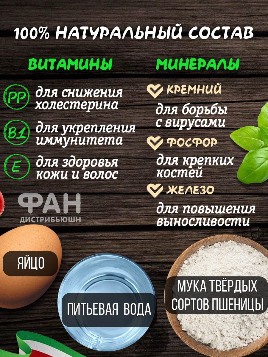 Описание: Итальянские длинные ленточные макароны ТАЛЬОЛИНИ 250 гр из твёрдых сортов пшеницы пользуются большой популярностью сегодня. Макаронные изделия гнезда из пшеничной муки высшего сорта являются высоко белковым продуктом, не содержат в составе гмо, глутамат, ароматизаторы, красители. Макарошки в форме гнезд из яиц без молока в составе отлично подходят для детей, кето диеты дюкана для похудения и полезного сбалансированного питания. Маквроны подходят для приготовления популярных блюд, среди которых: лагман, макароны по-флотски, mac and cheese с сыром, вок с грибами морепродуктами (креветки мидии моллюски) рыбой курицей, лапша со сливками в сливочном томатном сырном и сметанном соусе. Помимо этого, спагетти также подходят для различных детских куриных супов с вермишелькой и бульонов. Фигурные широкие макороны не развариваются во время варки, не слипаются, сохраняют степень готовности альденте. Итальянская паста актуальна на любой повод: романтический вкусный обед и ужин, на праздничный стол, в День Рождения, 8 марта, Новый Год, 23 февраля. Макаронные изделия RUMMO из Италии очень разнообразны по форме и составу. Среди них есть мелкие и крупные макароны, подходящие для известных блюд китайской японской корейской вьетнамской кухни, среди которых острый том ям, фо бо, макен чиз, лазанья. В ассортименте присутствуют также безглютеновые продукты без глютена из кукурузной и рисовой муки, цельнозерновая гречневая лопша для лагмана, бобовая диетическая диабетическая паста из нута полбы и красной чечевицы. Есть маленькие и большие ракушки, картофельные клецки ньокки, гнезда, всевозможные спагети, листы лазаньи, вермишель, широкая яичная дапша, звездочки и зернышки семечки ризони орзо по 400 гр 500гр 1 кг 3 кг. Рекомендуем обязательно попробовать наши хиты фетучини, фузилли, лингвини и тальятелле. Все макароны бакалеи имеют большой срок хранения. На все ассорти товаров действуют приятные скидки. *Может содержать следы сои и горчицы.