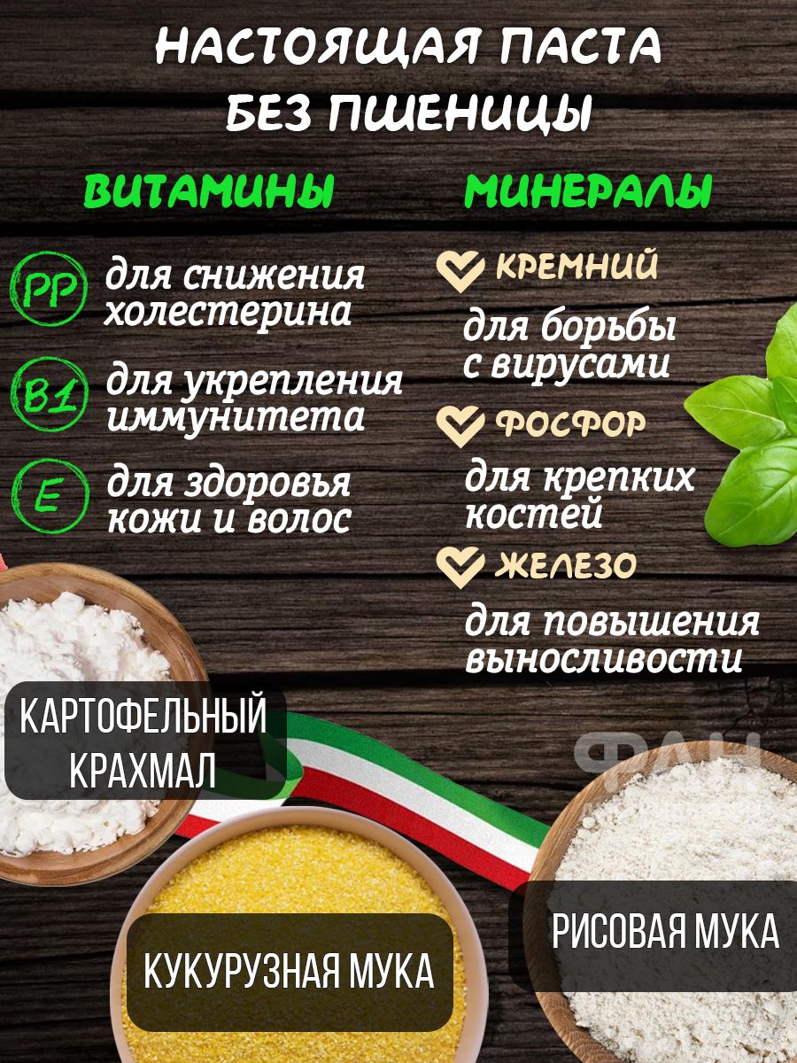 Описание: Итальянские макароны спагетти 400 гр без глютена пользуются большой популярностью сегодня. Безглютеновые макаронные изделия из кукурузной и рисовой муки являются высоко белковым и веган продуктом, не содержат в составе гмо, глутамат, ароматизаторы, красители. Длинные макарошки без яиц и молока в составе отлично подходят для детей, кето диеты дюкана для похудения и полезного сбалансированного питания. Маквроны идеальны для приготовления популярных блюд, среди которых: макароны по-флотски, mac and cheese с сыром, вок с грибами морепродуктами (креветки мидии моллюски гребешок) рыбой курицей, лапша со сливками в сливочном томатном сырном и сметанном соусе. Помимо этого, макарны спагети подходят для различных детских супов и бульонов. Фигурные макороны не развариваются во время варки, не слипаются, сохраняют степень готовности альденте. Итальянская паста актуальна на любой повод: романтический вкусный обед и ужин, на праздничный стол, в День Рождения, 8 марта, Новый Год, 23 февраля. Макаронные изделия RUMMO из Италии очень разнообразны по форме и составу. Среди них есть мелкие и крупные макароны, подходящие для известных блюд китайской японской корейской вьетнамской кухни, среди которых острый том ям, фо бо, макен чиз, лазанья. В ассортименте присутствуют также макароны из твёрдых сортов пшеницы, цельнозерновая гречневая лопша, бобовая диетическая диабетическая паста полбы и красной чечевицы. Есть маленькие и большие ракушки, картофельные клецки ньокки, гнезда, всевозможные спагетти, листы лазаньи, вермишель, спиральки, широкая яичная дапша для лагмана, звездочки и зернышки семечки ризони орзо из пшеничной муки высшего сорта по 400 гр 500 гр 1 кг 3 кг. Рекомендуем обязательно попробовать наши хиты фетучини, фузилли, лингвини и тальятелле. Все макароны бакалеи имеют большой срок хранения. На все ассорти товаров действуют приятные скидки.