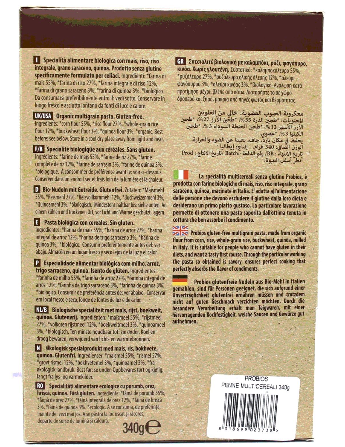 Макароны Пенне Probios мультизерновые 340 гр, Паста без глютена