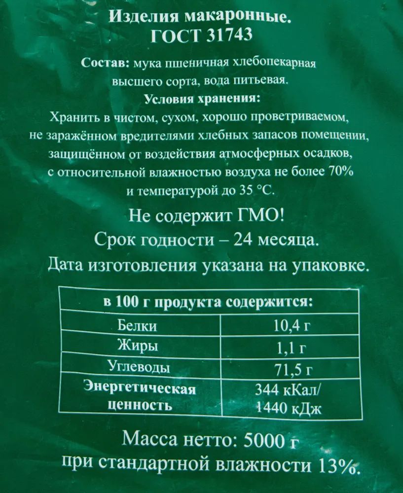 Макароны Перья, Высший Сорт ГОСТ, Ситно, 5 кг.