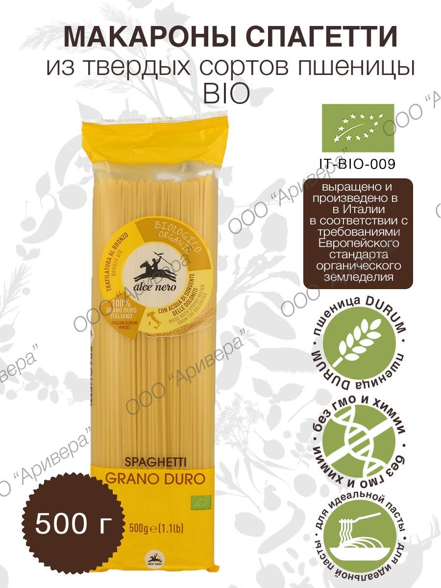 Макароны СПАГЕТТИ ALCE NERO из твердых сортов пшеницы БИО, Италия, 500 г