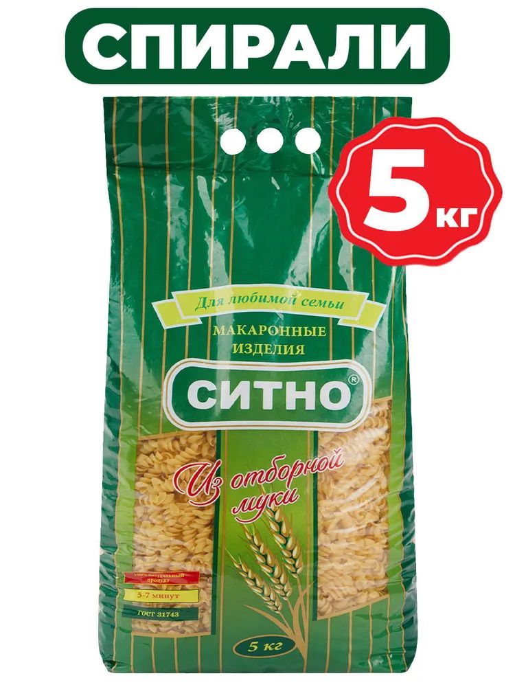 Макароны Спирали, Высший Сорт ГОСТ, Ситно, 5 кг.