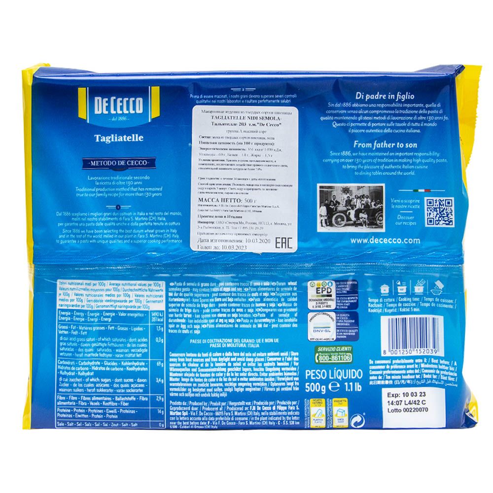 Описание: Макароны Тальятелле №203 De CeccoDe Cecco – ведущая международная итальянская компания по производству высококачественных макаронных изделий и оливкового масла, основанная в 1886 году.