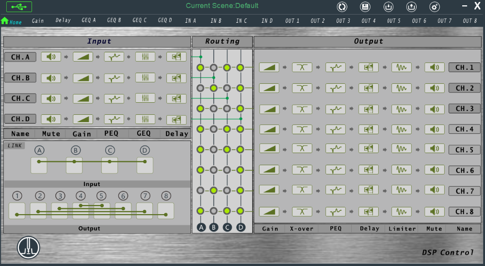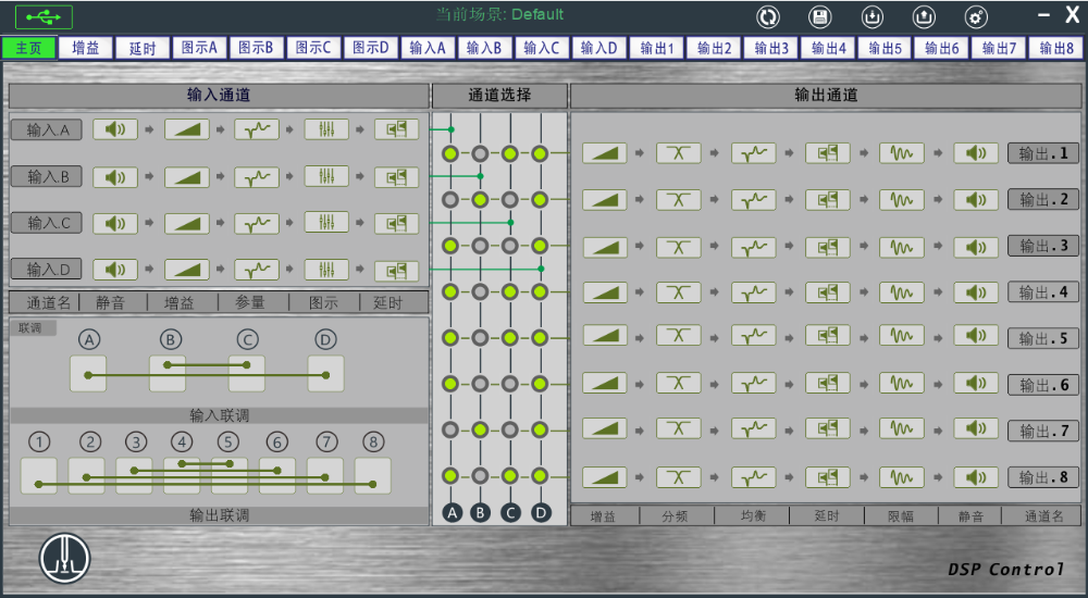 Система базы по умолчанию 96 к выборки, 2S резьбового соединения: 4 входного сигнала и 8 выходов (SPDF Интерфейс могут быть добавлены)
