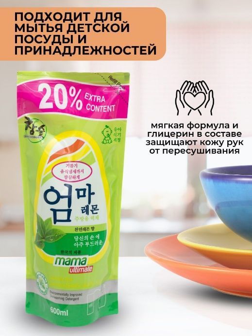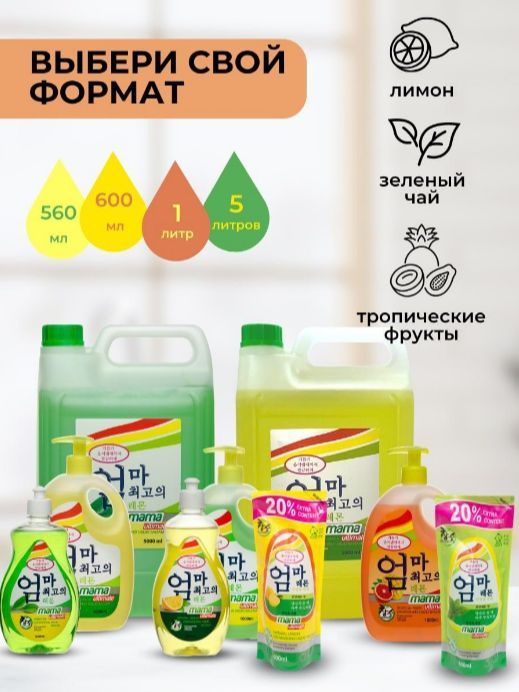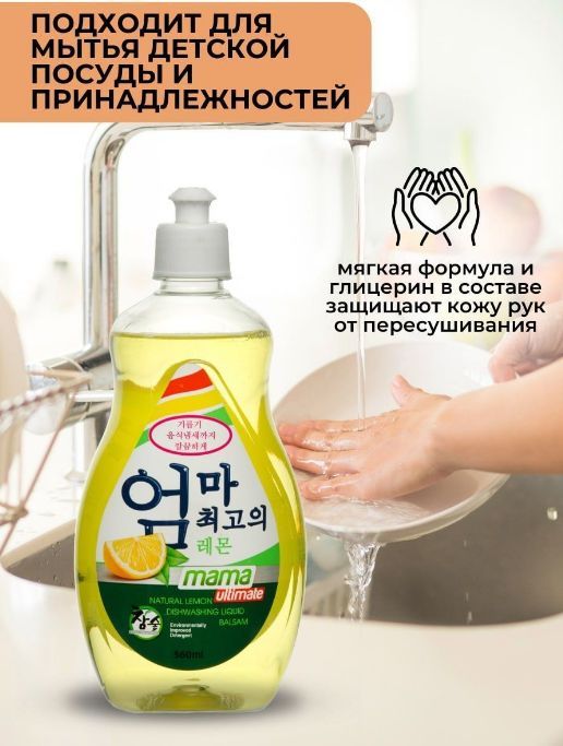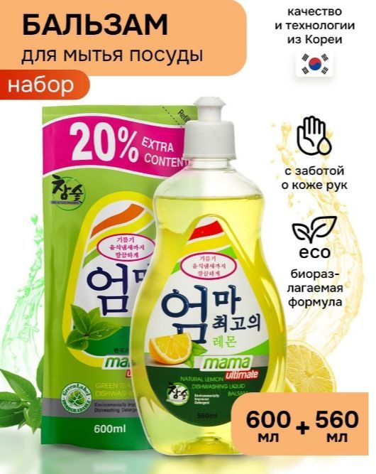 средство бальзам для мытья посуды "Mama Ultimate" зеленый чай, 600 мл. - 1 шт.; средство бальзам для мытья посуды "Mama Ultimate" лимон, 560 мл. - 1 шт.