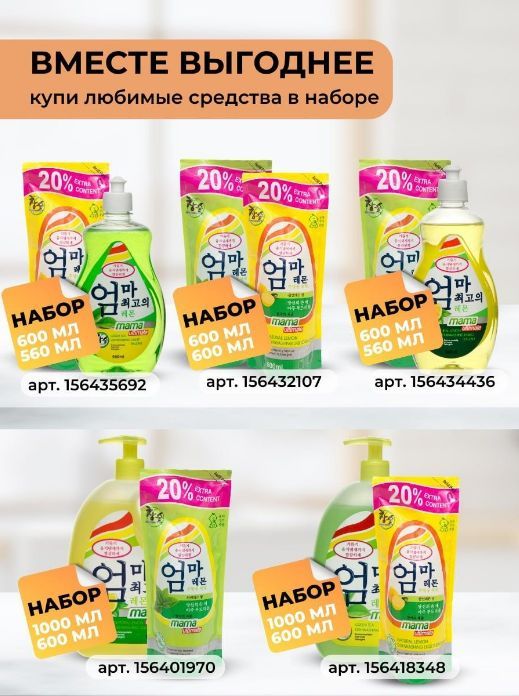 Mama Ultimate Набор Средство бальзам для мытья посуды 600 мл и 560 мл