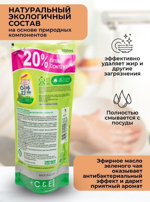 Густой гель для мытья всех видов посуды разработан в Южной Корее (страна происхождения), а разлит и упакован под контролем в России.