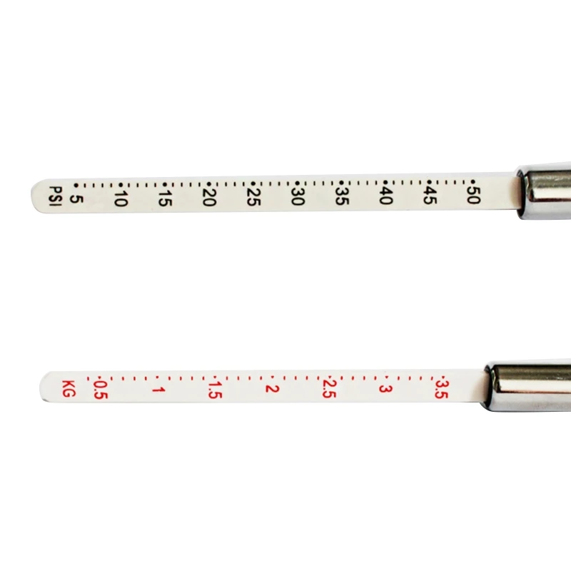 Характеристики: Датчик давления в шинах для карандашей так же прост, как и манометры. Дизайн без излишеств прост, и любой человек может быстро получить показания давления. Конструкция без батареи будет продолжать работать при любых условиях без необходимости замены батарей или выполнения какого-либо дополнительного обслуживания.