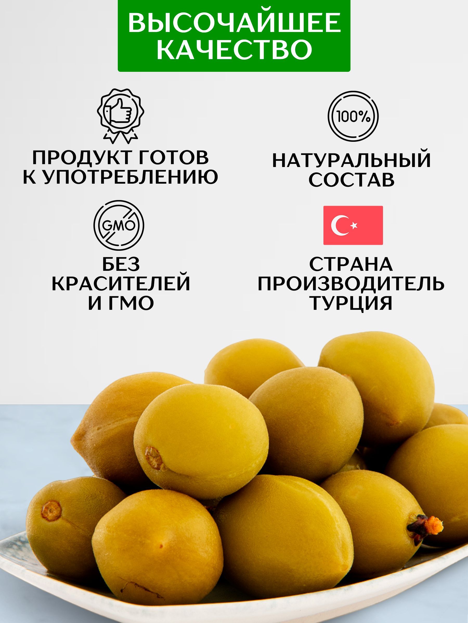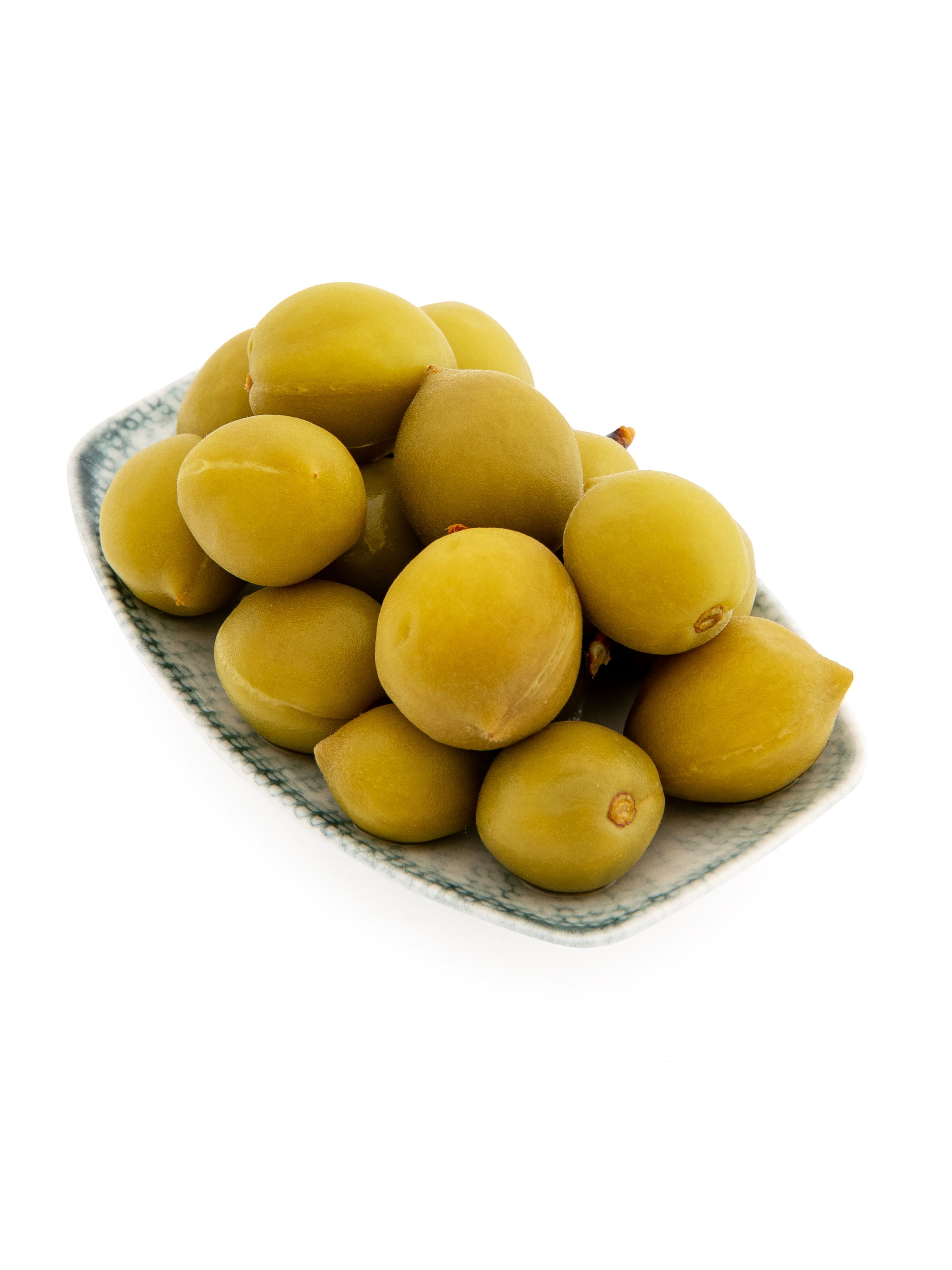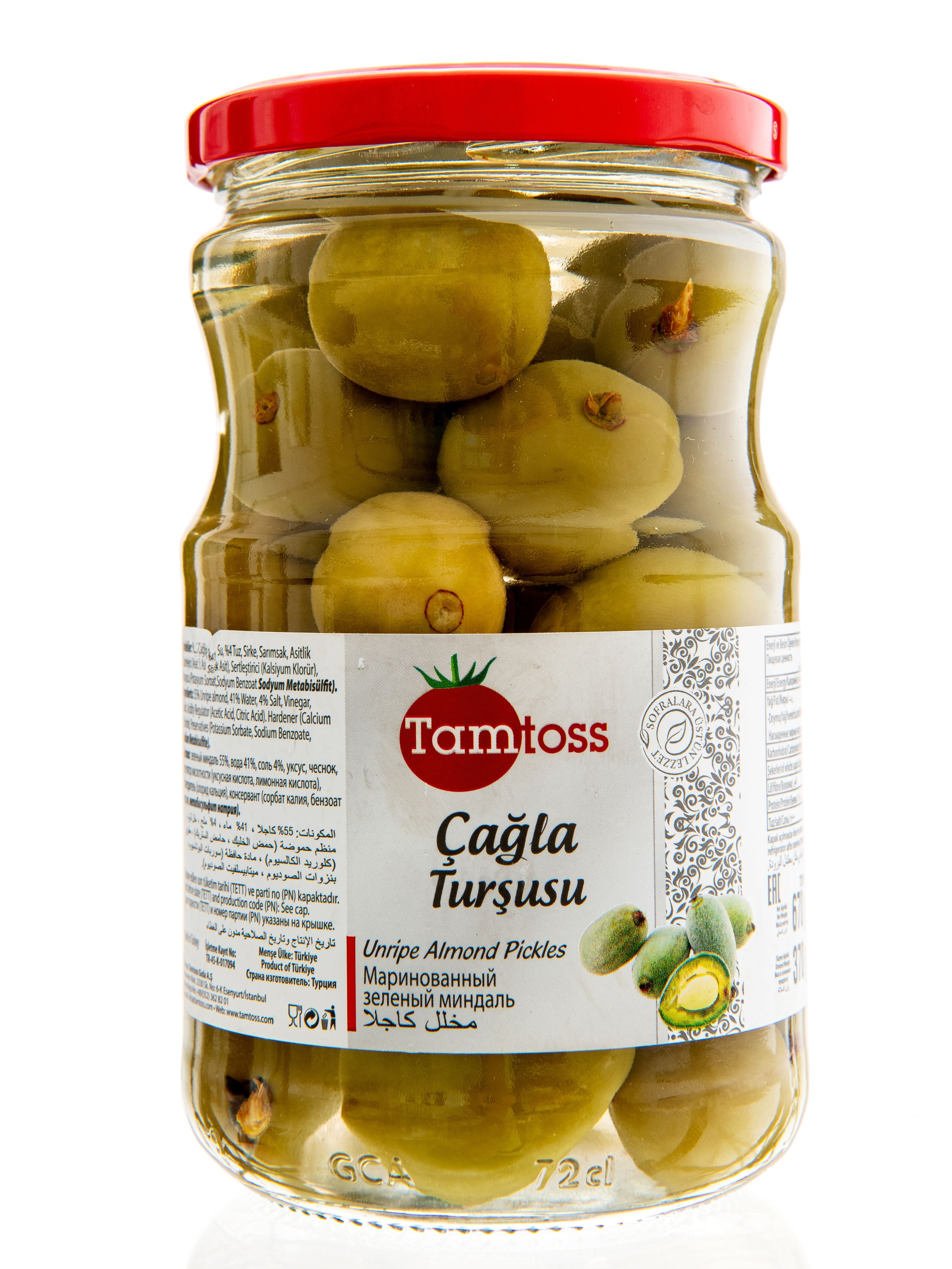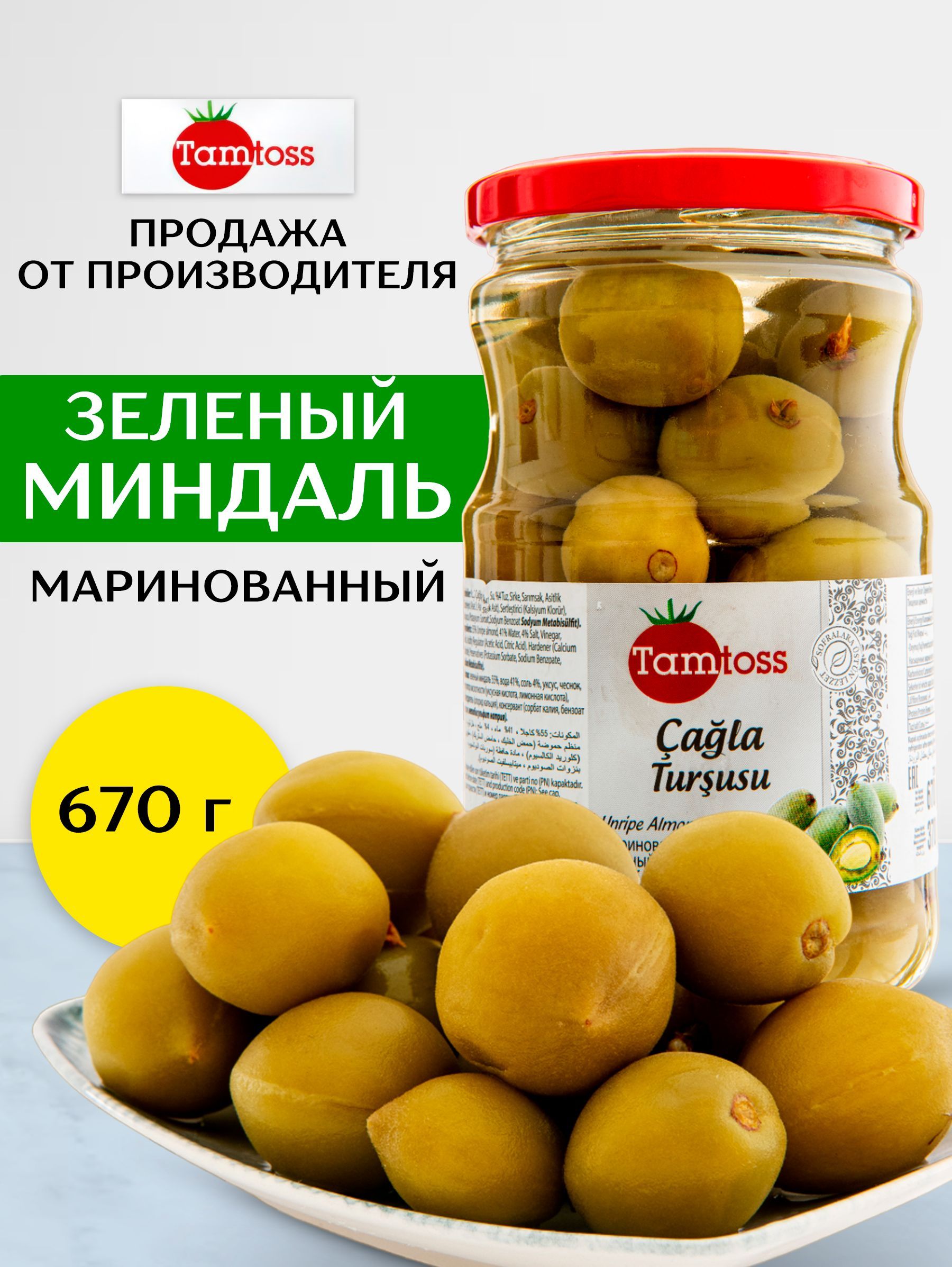 Описание: Зеленый маринованный миндаль - не только вкусный, но и очень полезный. Это обычный миндаль, но еще не зрелый. Ядро плода ещё не успело затвердеть до состояния жёсткой коричневой скорлупы и его легко можно раскусить. Зелёный миндаль собирают несколько недель после цветения дерева. На этой стадии плоды чуть кисловатые, горьковатые и сладковатые, поэтому то они такие вкусные. Зеленый миндаль - легко усваиваемый, диектический продукт. В зеленом миндале в два раза меньше калорий, чем в обычных спелых плодах. Молодой миндаль богат витаминами А, С, Е, В1-В9, кальцием, фосфором, магнием, цинком и железом. В нем много антиоксидантов, рибофлавина и L-карнитина. Зеленый миндаль - отличная закуска к Вашему столу!