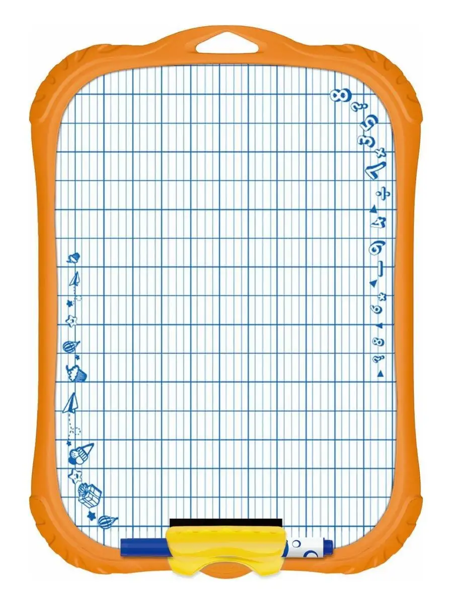 Маркерная доска А4 оранжевая, маркер, губка