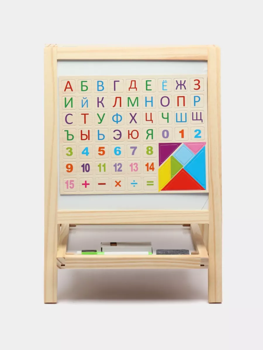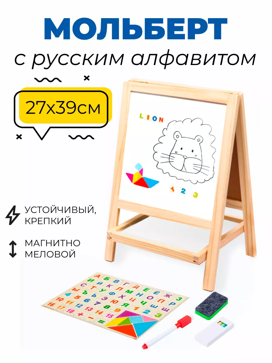 Состав набора мольберт; буквы; мелки